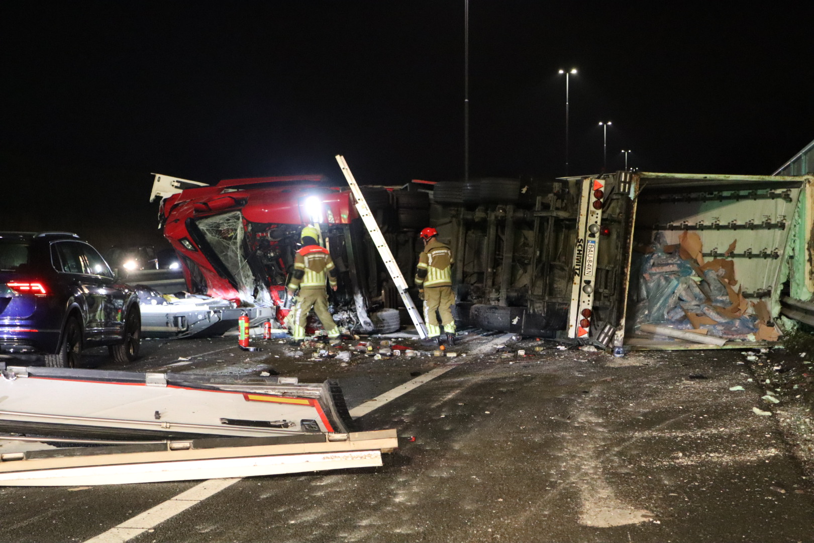 Geplaatst op 3 februari 2024, om 20:06 uurELSHOUT – Op de A59 bij Elshout richting Waalwijk is een ernstig ongeval gebeurd met een vrachtwagen en een Range Rover, wat leidde tot de sluiting van de snelweg. Het incident, waarbij beide voertuigen kantelden en kippenvlees over de snelweg verspreid raakte, vond plaats rond 19.30 uur.