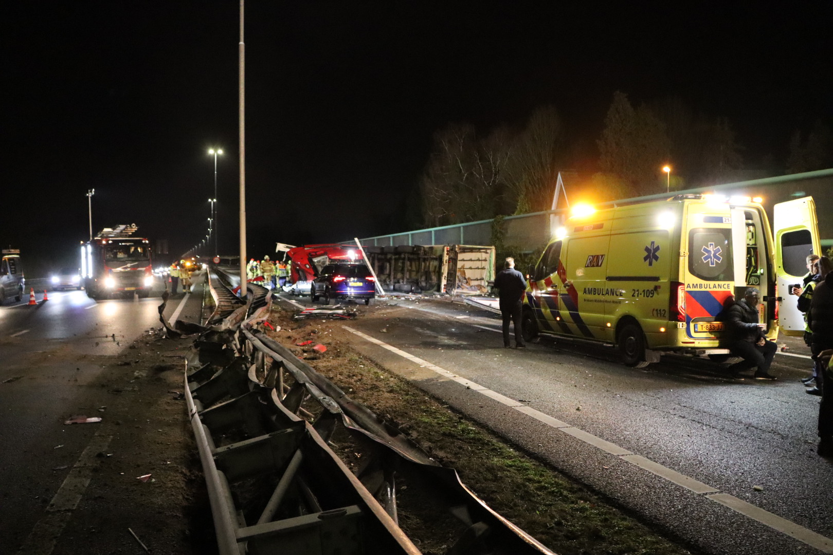 De inzittenden van beide voertuigen, waaronder de vrachtwagenchauffeur en zijn vrouw, zijn naar het ziekenhuis vervoerd. De vrouw zou er ernstig aan toe zijn.