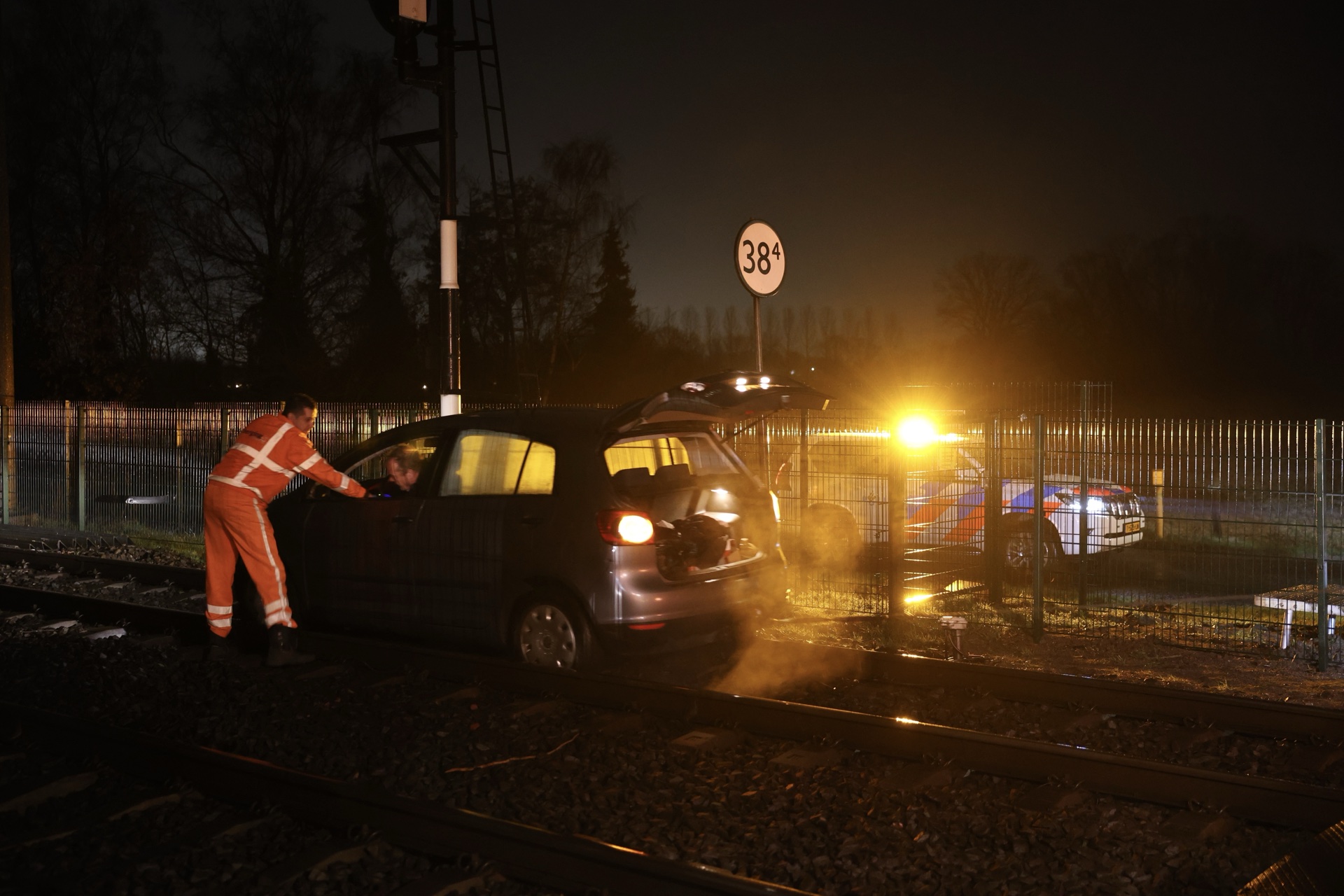 Navigatie verkeerd begrepen: auto belandt op spoor
