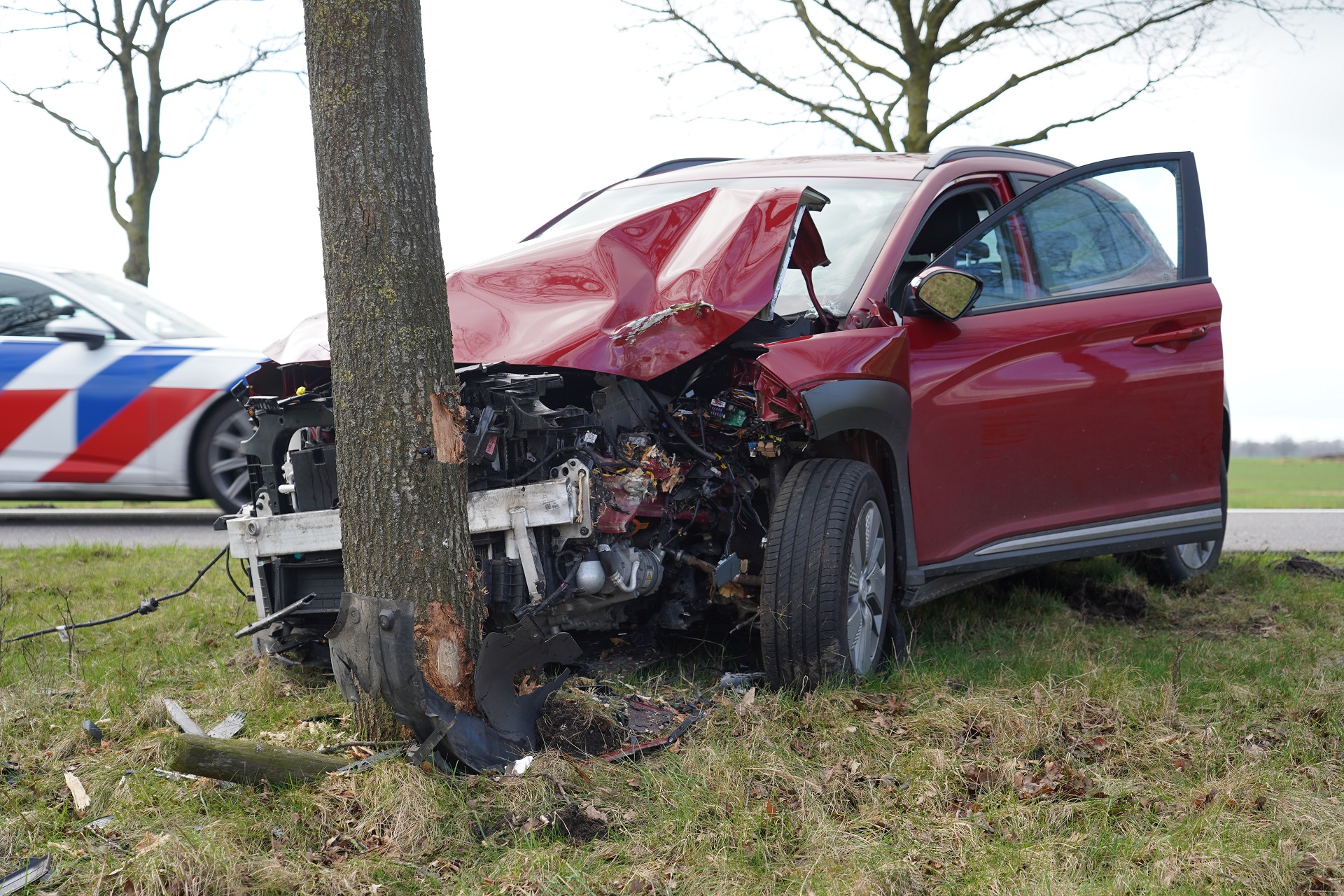 Auto botst tegen boom, vrouw gewond naar ziekenhuis