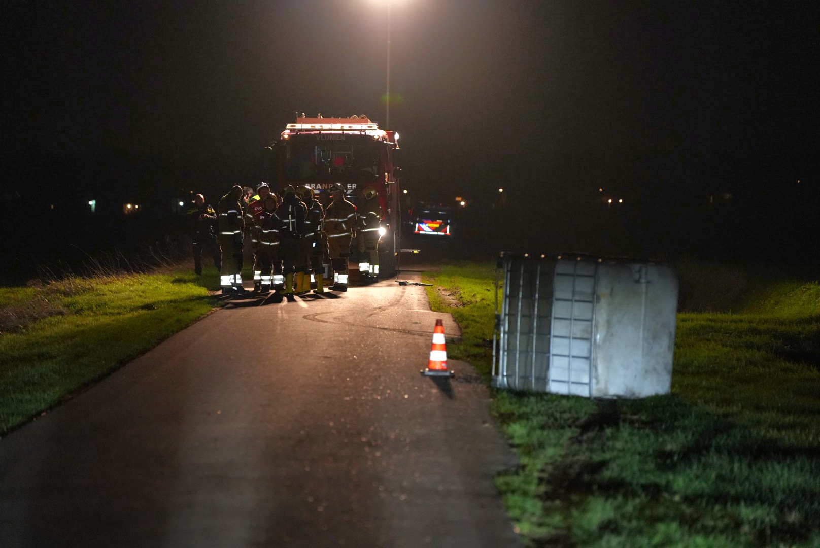 De brandweer heeft een lint er omheen gespannen en als het licht is zal het vat opgeruimd worden.
