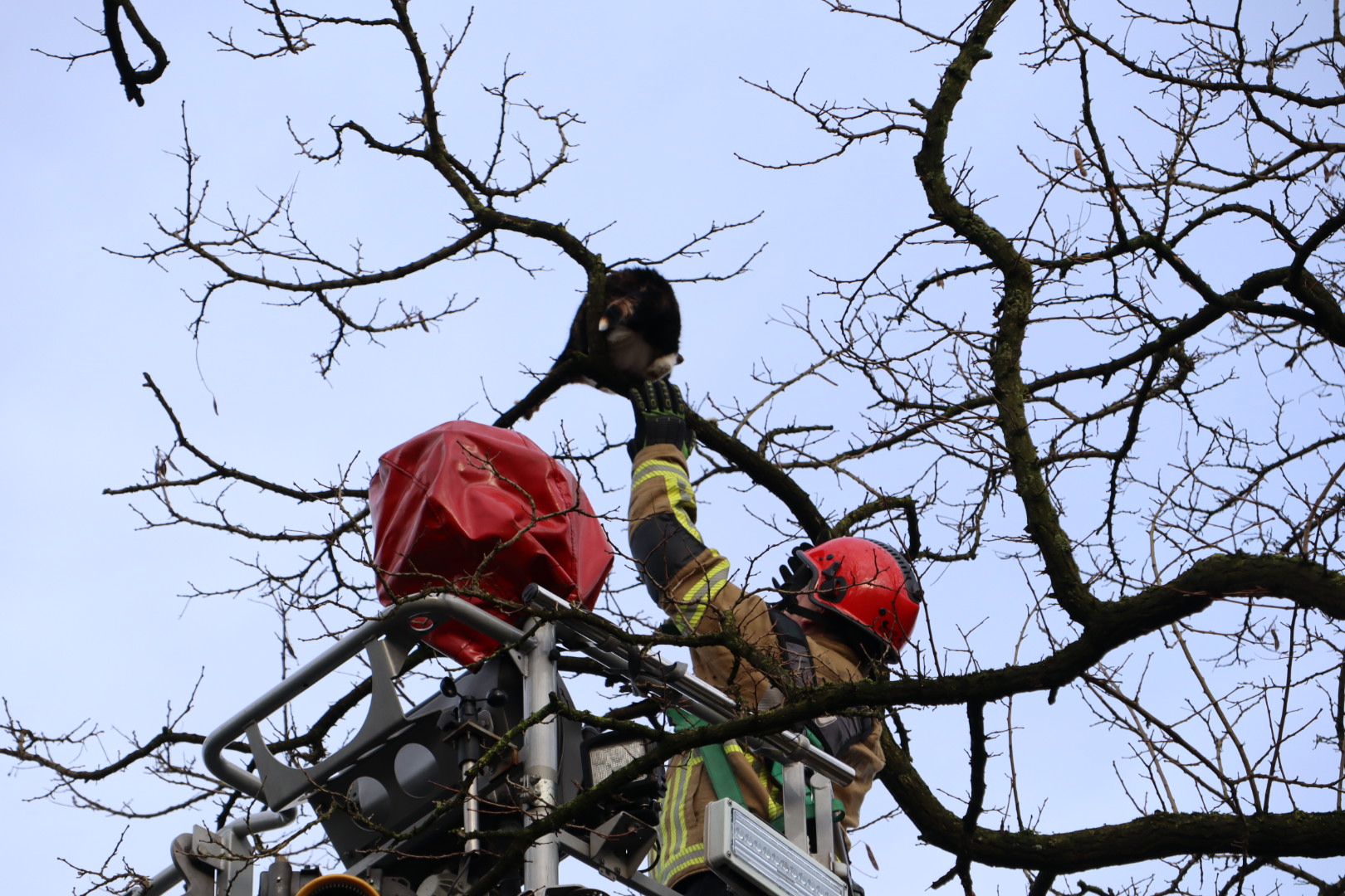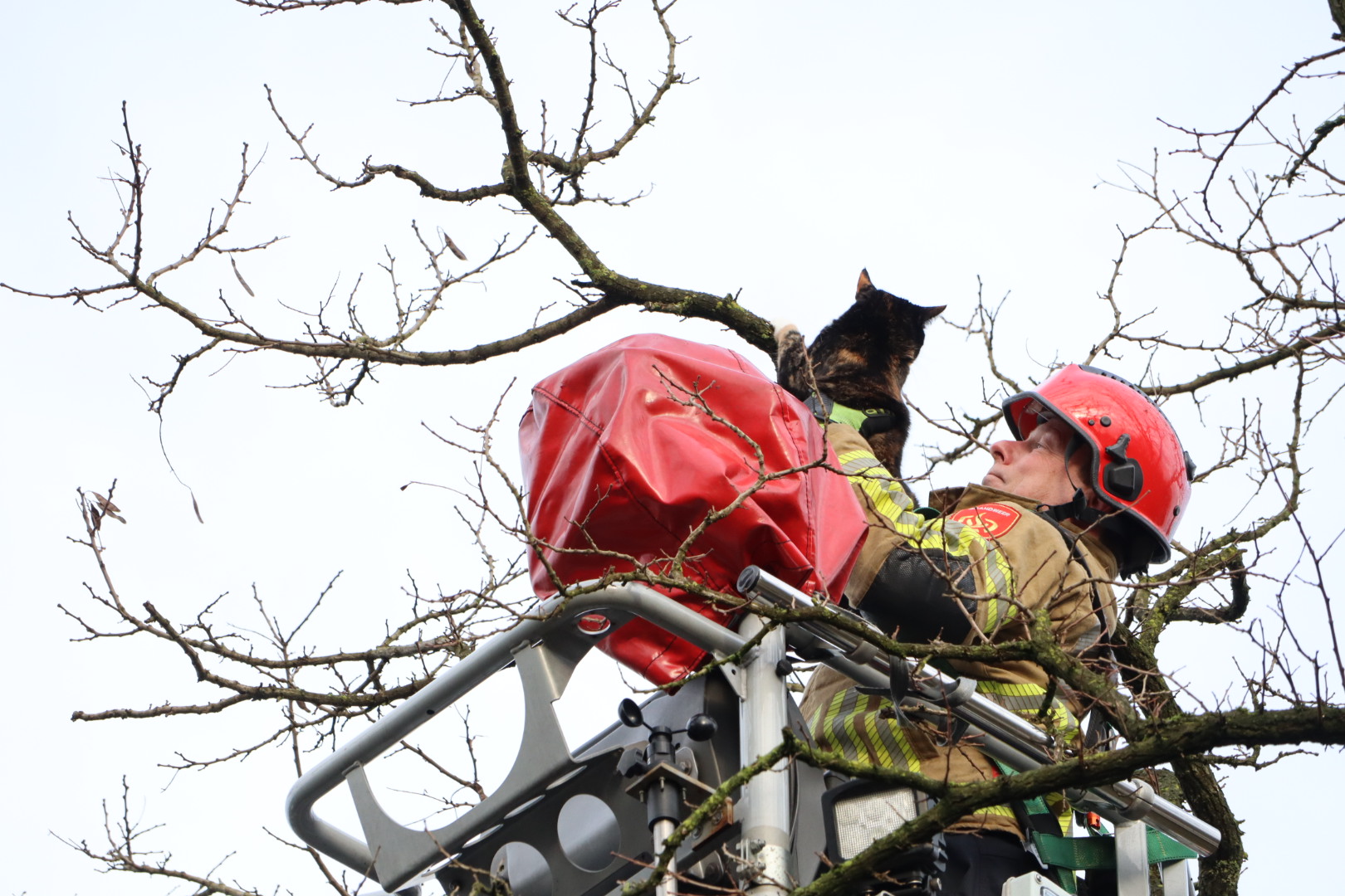 De kat, genaamd Sientje, was woensdagmiddag om onbekende redenen in de boom geklommen en durfde er niet meer uit te komen. Een brandweerteam kwam ter plaatse met een hoogwerker om het diertje uit de boom te halen. Sientje verzette zich echter tegen de reddingspoging. Na enige tijd slaagde een brandweerman erin om de kat vast te pakken en uit de boom te halen. Toen de brandweerman haar steviger vast probeerde te houden, greep ze haar kans en sprong vanuit de bak op de grond, waarna ze er snel vandoor ging.
