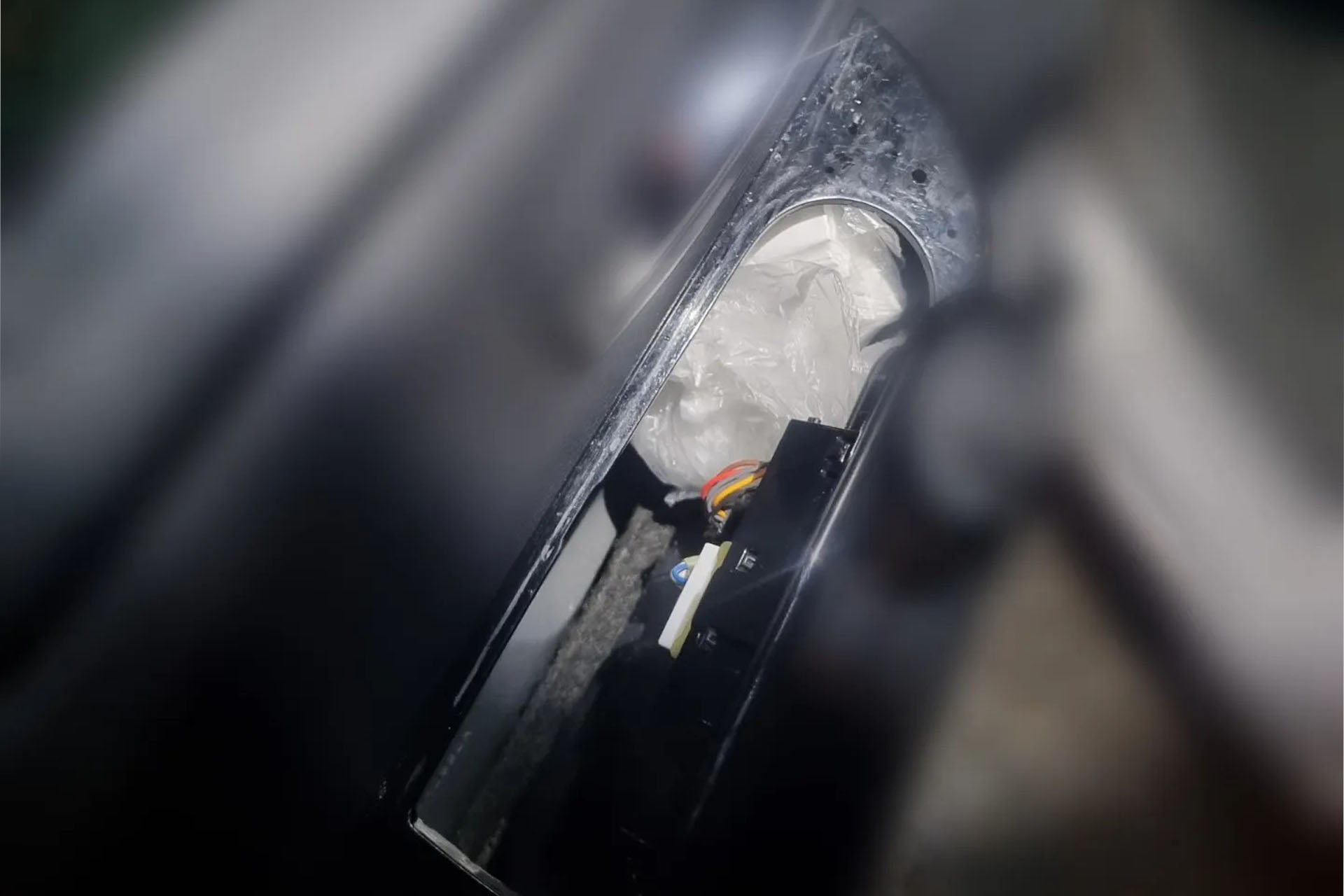 Bij het politiebureau in Helmond troffen agenten de bewuste auto aan. Na controle bleek de bestuurder positief te testen op cocaïne en cannabis, waarop hij werd gearresteerd. Bij het fouilleren vonden ze een geldbedrag van ongeveer 500 euro en een hoeveelheid hennep, hasj en cocaïne voor eigen gebruik. Bloed werd afgenomen door een verpleegkundige voor verdere analyse. Hoewel de verdachte aanvankelijk werd vrijgelaten, werd hij later weer bij zijn auto aangetroffen. Bij het doorzoeken van het voertuig ontdekten ze meerdere verborgen compartimenten met een aanzienlijke hoeveelheid verdovende middelen. Toen de verdachte hiermee werd geconfronteerd, sloeg hij op de vlucht. De politie nam diverse telefoons, de auto, het geld en de drugs in beslag en kreeg toestemming voor een buiten heterdaad aanhouding van de verdachte. De verdachte meldde zichzelf afgelopen maandag op het politiebureau van Helmond.