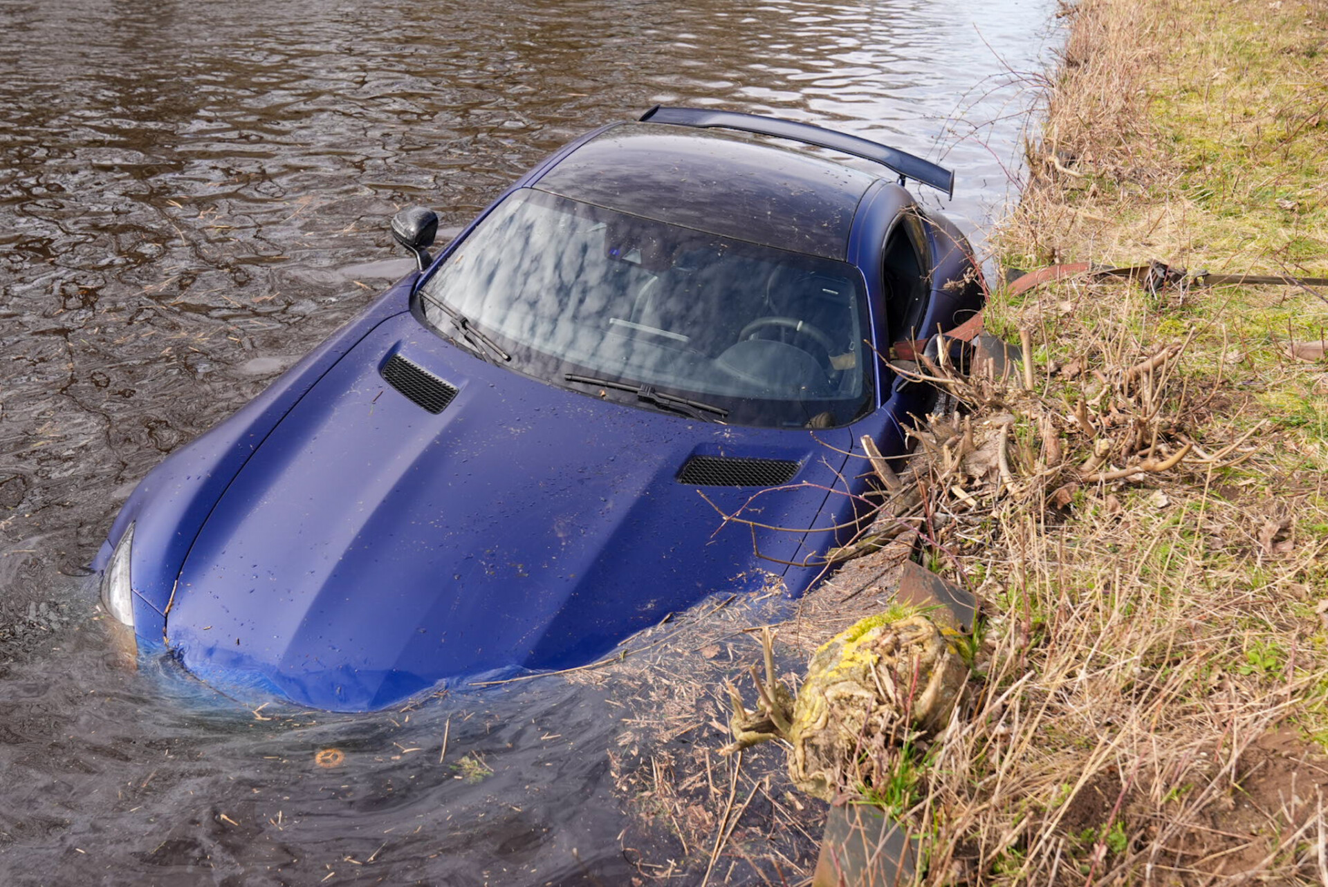 Auto belandt in kanaal, bestuurder brengt zichzelf in veiligheid