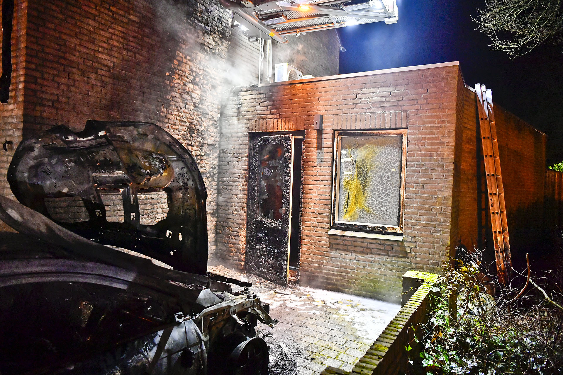De auto stond geparkeerd op de inrit van een hoekwoning. Ook had de aanbouw flinke schade en door de hitte braken de stenen van de zijgevel af. Ook werd een hoogwerker ingezet ter controle van bovenaf op de woning. Over de oorzaak is nog niets bekend. Wel werd er een klein plastic flesje voor de auto aangetroffen.