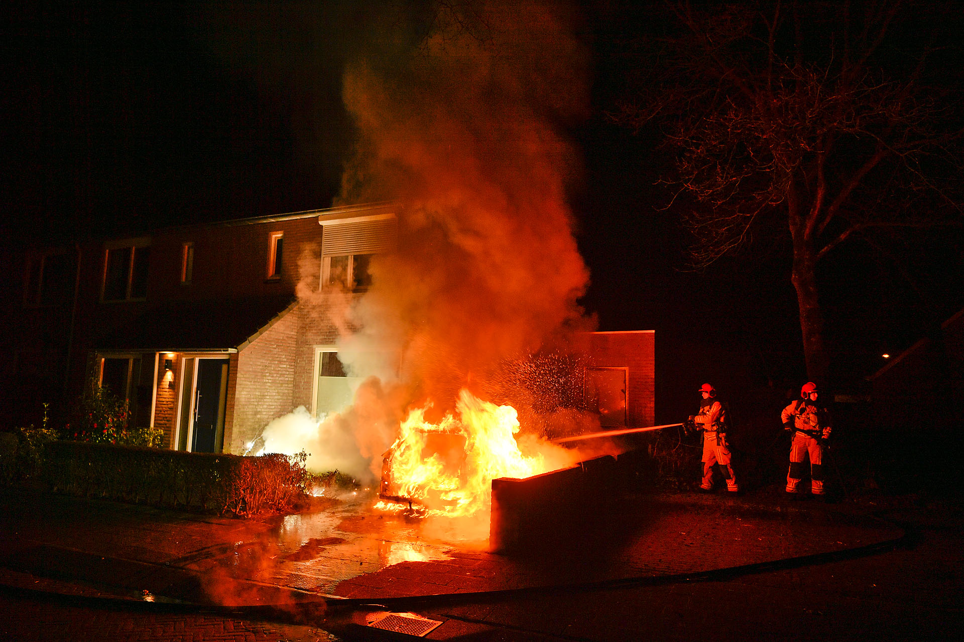 De auto stond geparkeerd op de inrit van een hoekwoning. Ook had de aanbouw flinke schade en door de hitte braken de stenen van de zijgevel af. Ook werd een hoogwerker ingezet ter controle van bovenaf op de woning. Over de oorzaak is nog niets bekend. Wel werd er een klein plastic flesje voor de auto aangetroffen.