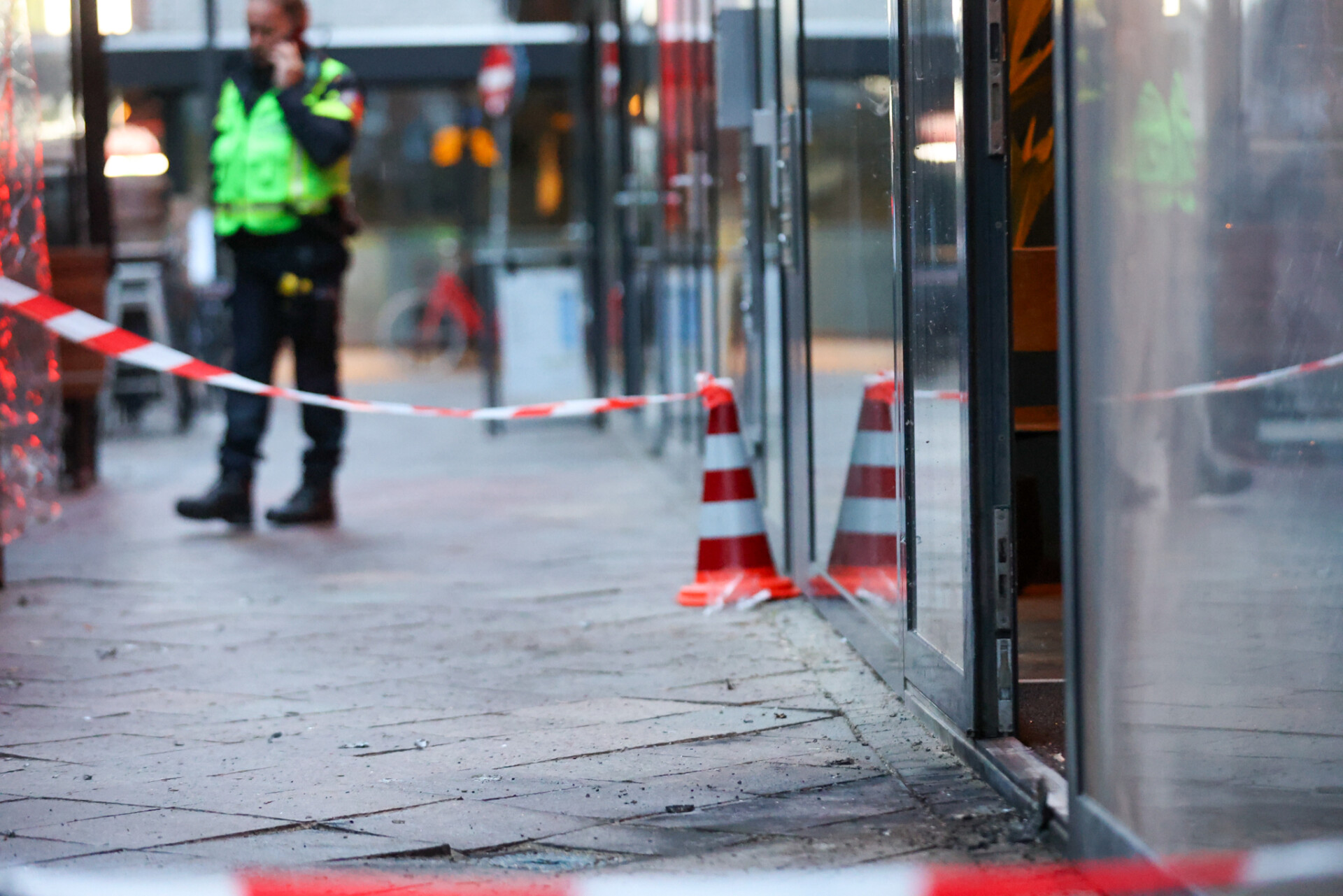 Bij een restaurant was een explosief afgegaan. De politie heeft een plaats delict gemaakt en is in afwachting van de forensische opsporing om uitgebreid onderzoek te gaan doen.