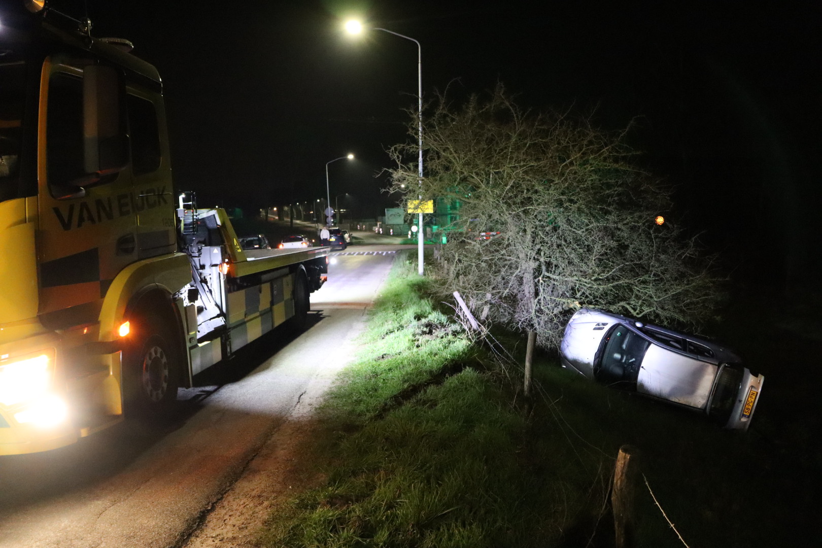 Voorbij de brug in de bocht was de bestuurder de macht over het stuur verloren, en reed van het talud af. De bestuurder en een inzittende waren door omstanders uit hun auto gehaald. Beide kwamen met de schrik vrij. De inzittende is na verhoor met de politie door een omstander thuisgebracht.