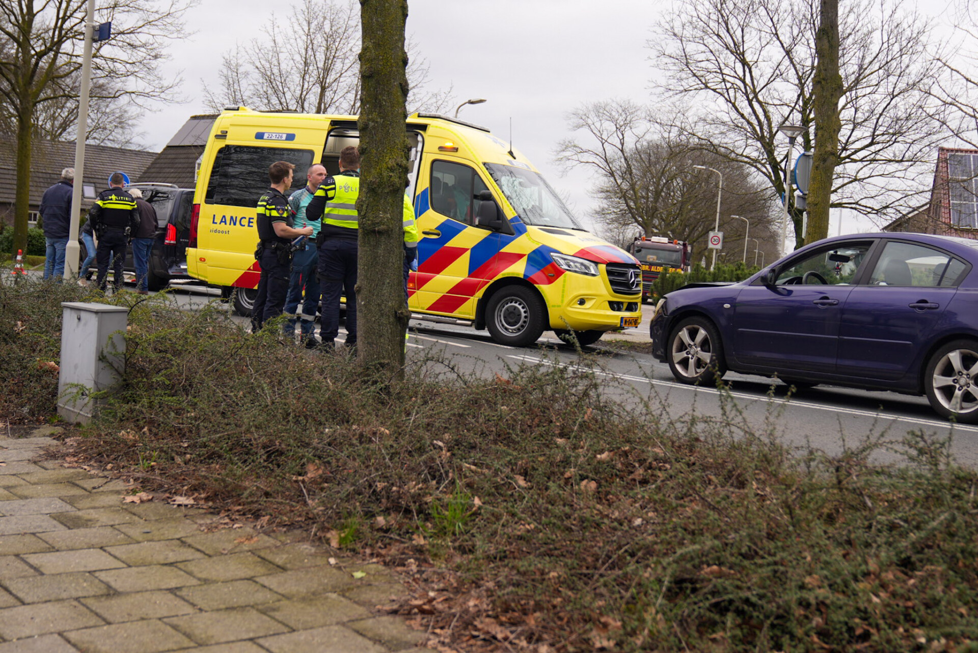 De vrouw is met onbekende verwondingen met de ambulance naar het ziekenhuis gebracht. De politie is mee naar het ziekenhuis, dit omdat de vrouw te veel had gedronken. De flessen wijn lagen op de bijrijdersstoel klaar .