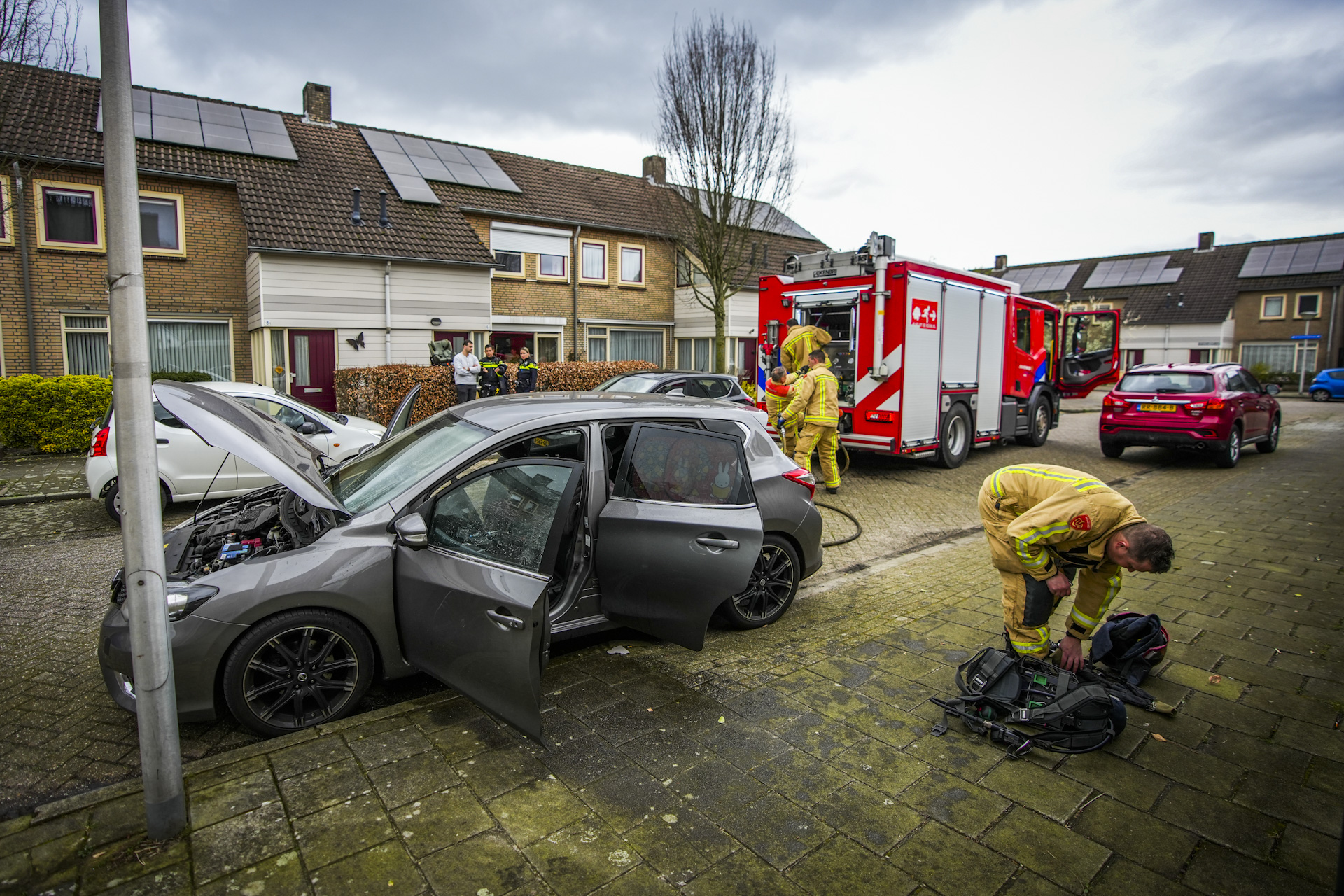 Ook toen de brandweer ter plaatse kwam hielden zij de deur op een kleine kier, precies genoeg om de brand met water te blussen.