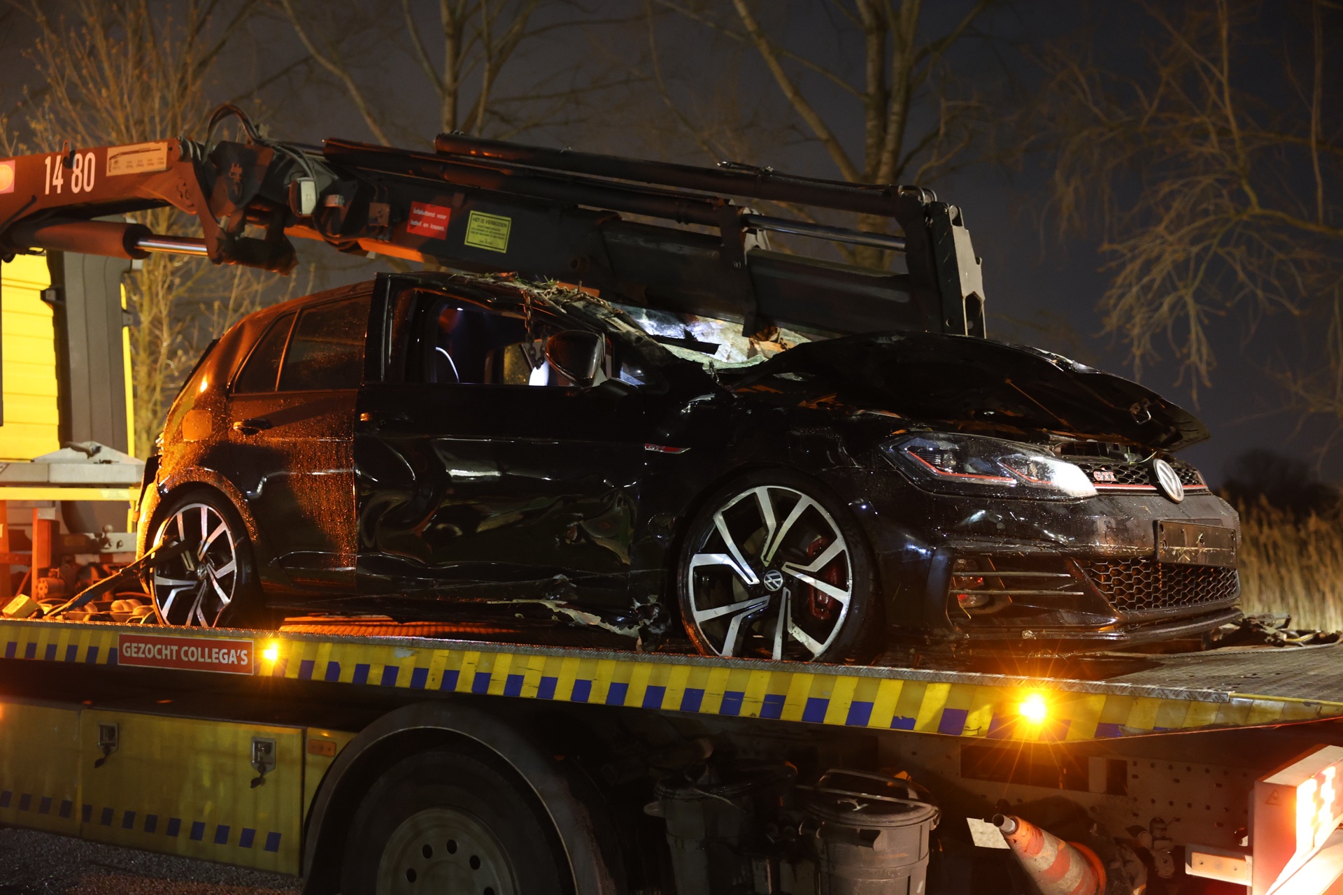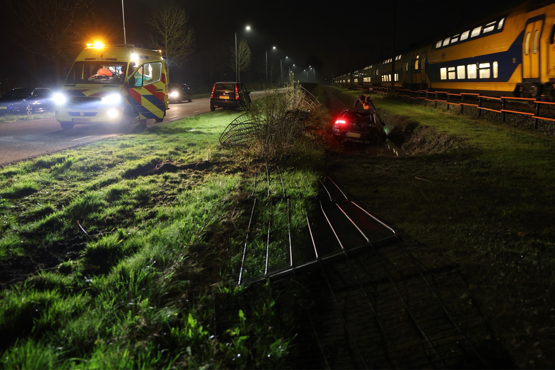 Een automobilist raakte met zijn auto van de weg, ramde een hekwerk omver en belandde in een sloot. De man is in een ambulance nagekeken en voor verder onderzoek per ambulance naar het ziekenhuis vervoerd. Zowel het hekwerk als de auto raakten zwaar beschadigd. Een bergingsbedrijf kwam ter plaatse om de auto uit de sloot te takelen.