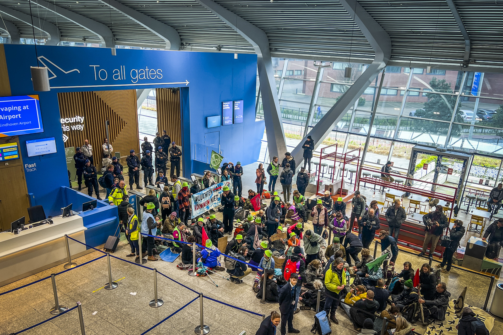 EINDHOVEN – Tijdens een klimaatprotest op Eindhoven Airport zijn afgelopen zaterdag volgens de marechaussee 106 personen gearresteerd. Van deze groep werden 31 activisten aangehouden omdat ze trachtten een hek te passeren om op het luchthaventerrein te komen. De resterende arrestaties vonden plaats omdat de betrokkenen weigerden gehoor te geven aan een bevel om de luchthaventerminal te verlaten.