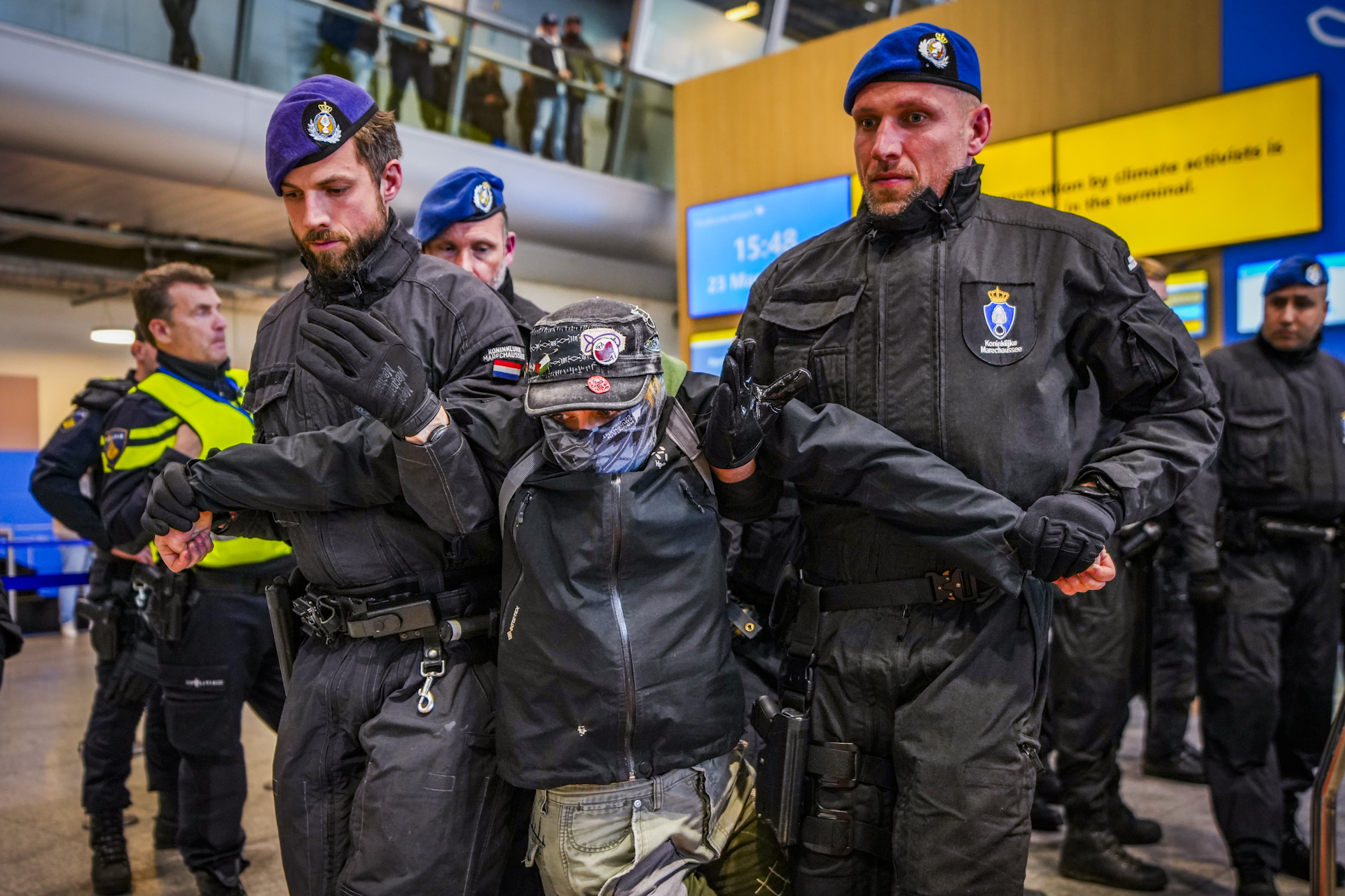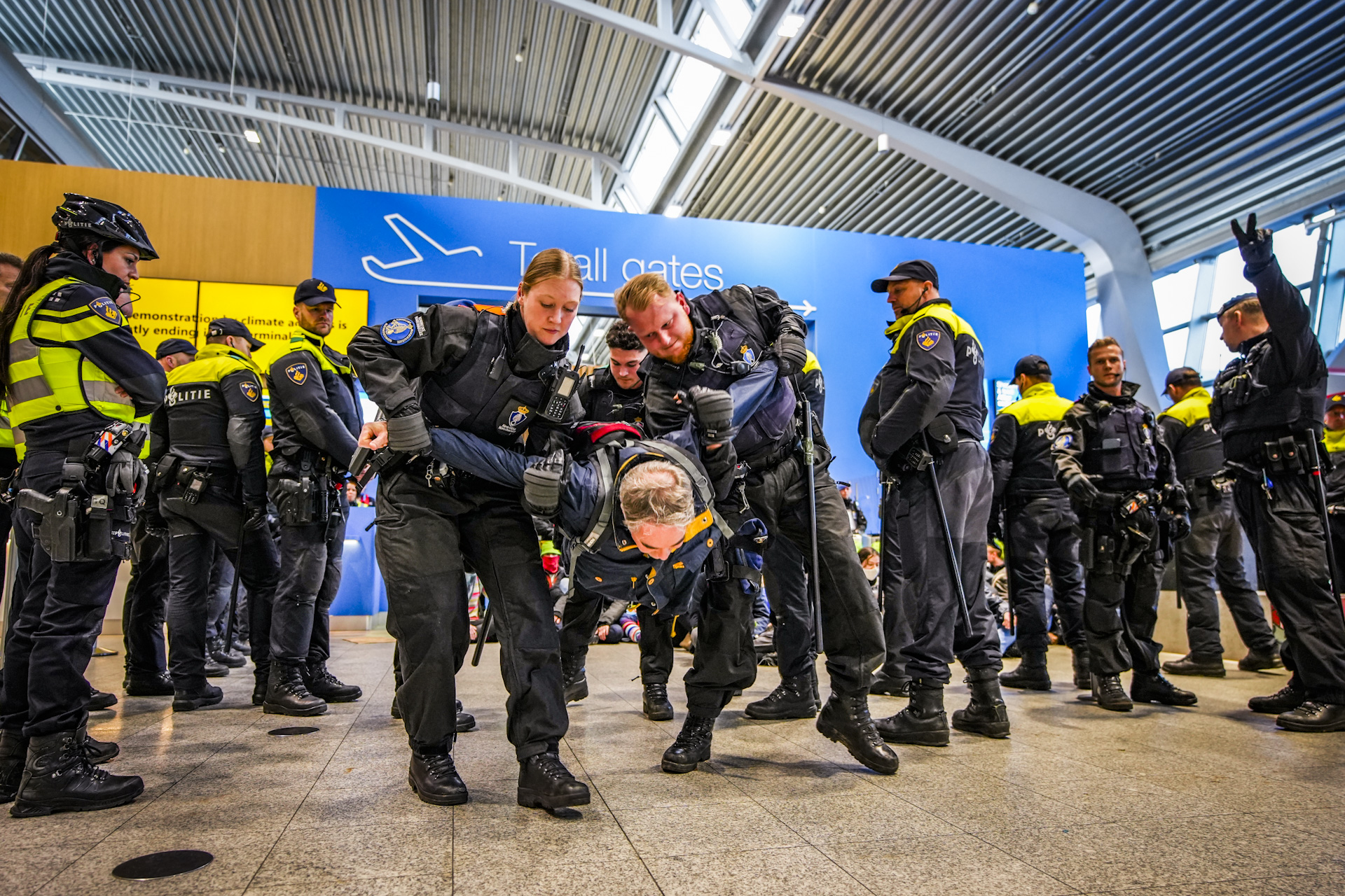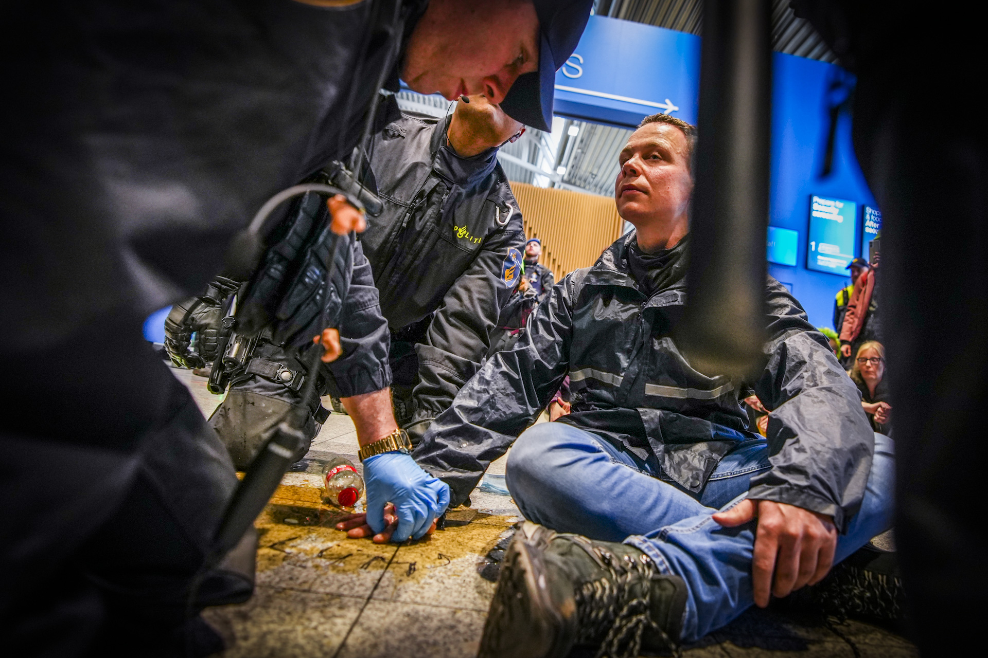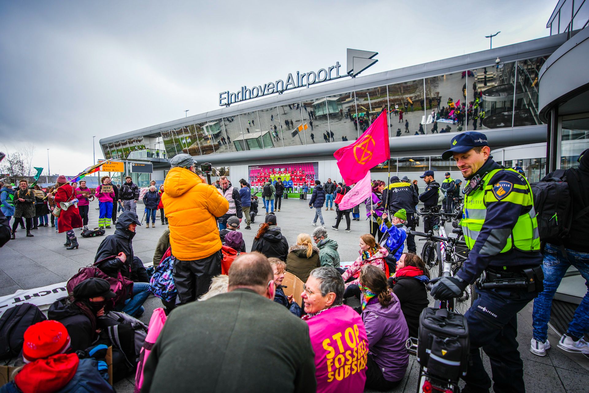 FOTOSERIE: Ruim 100 aanhoudingen bij klimaatprotest op Eindhoven Airport