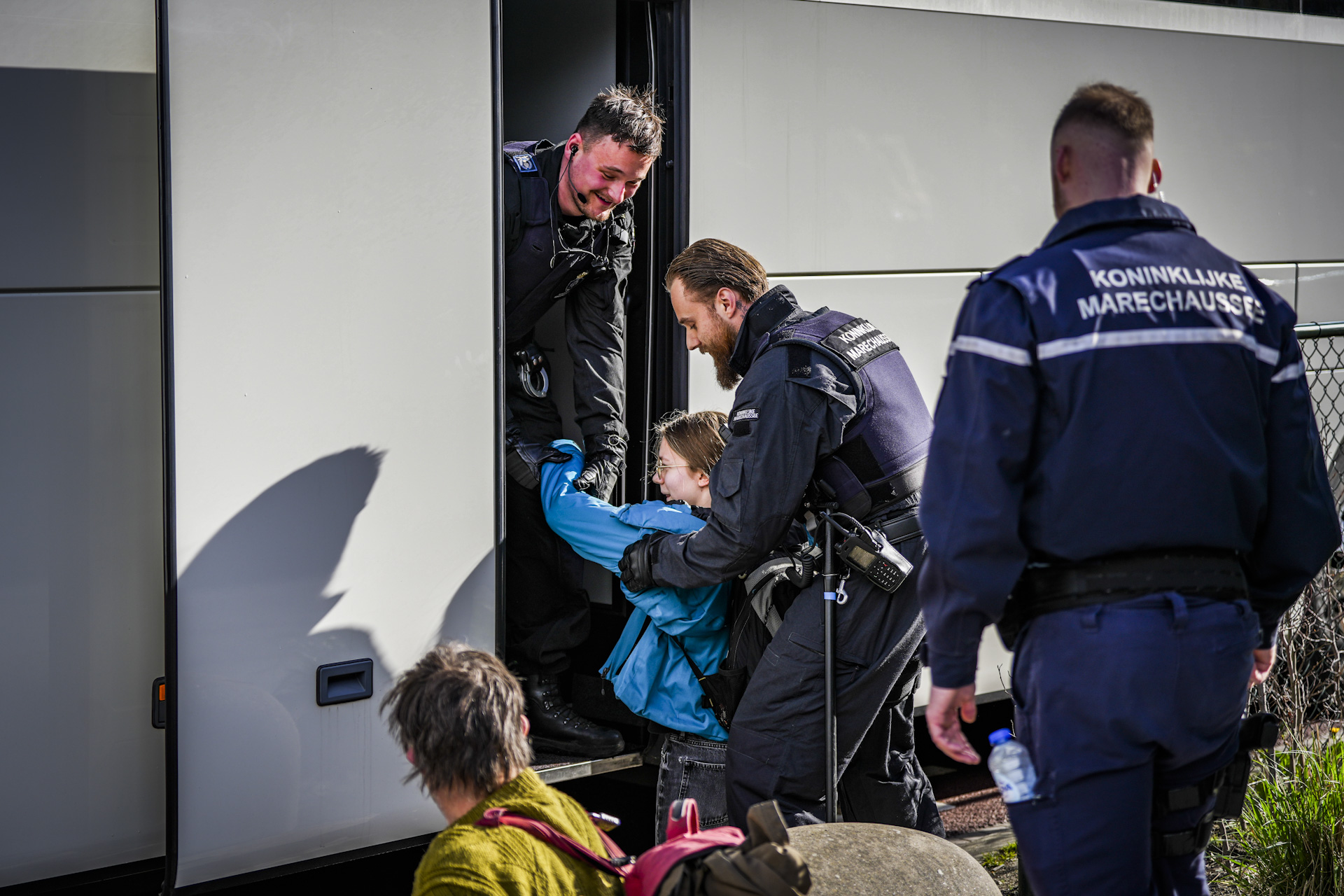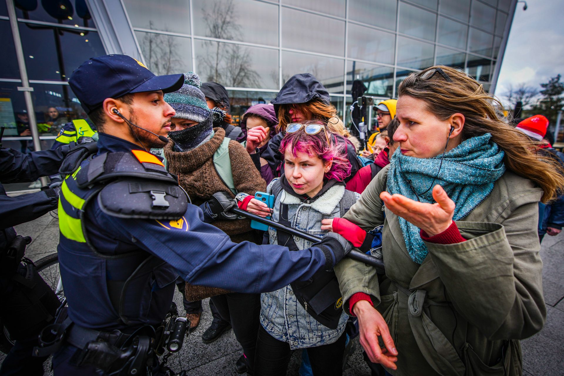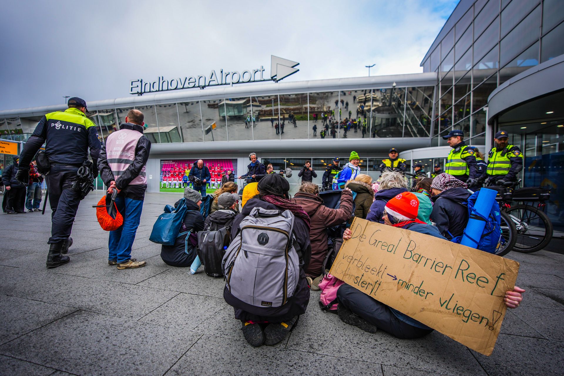 FOTOSERIE: Ruim 100 aanhoudingen bij klimaatprotest op Eindhoven Airport