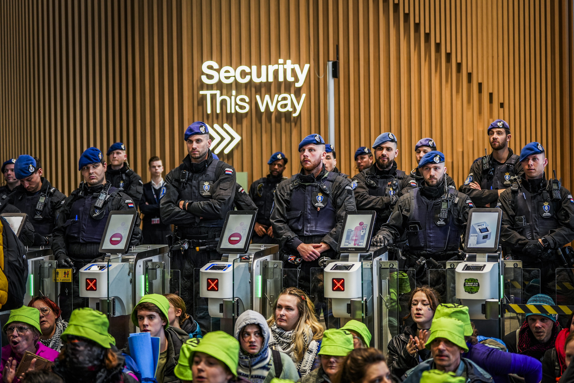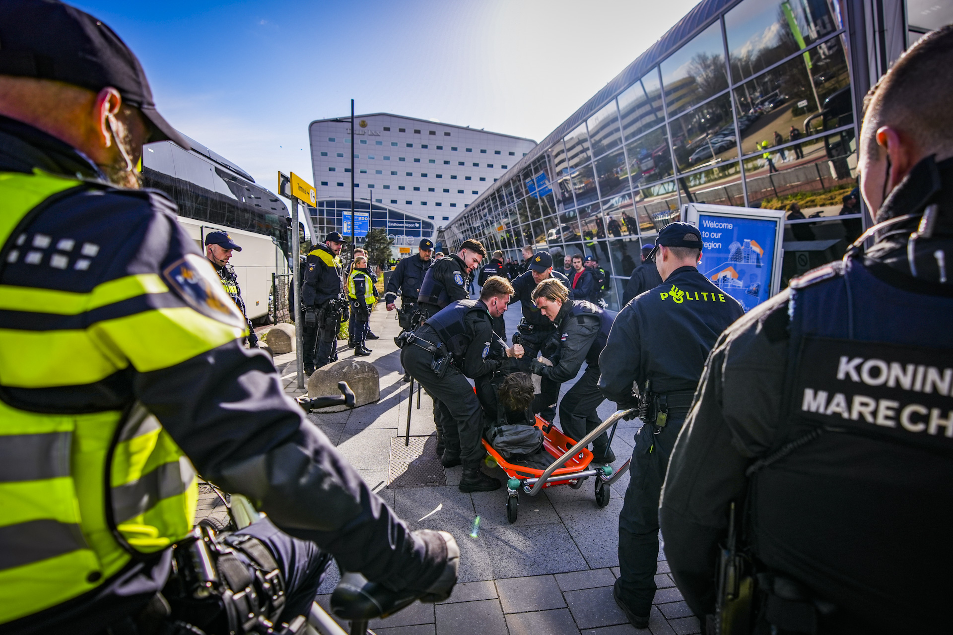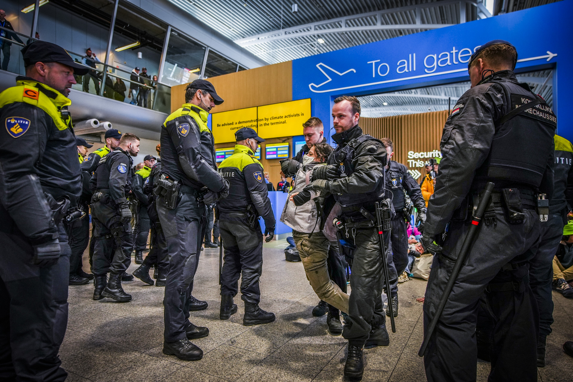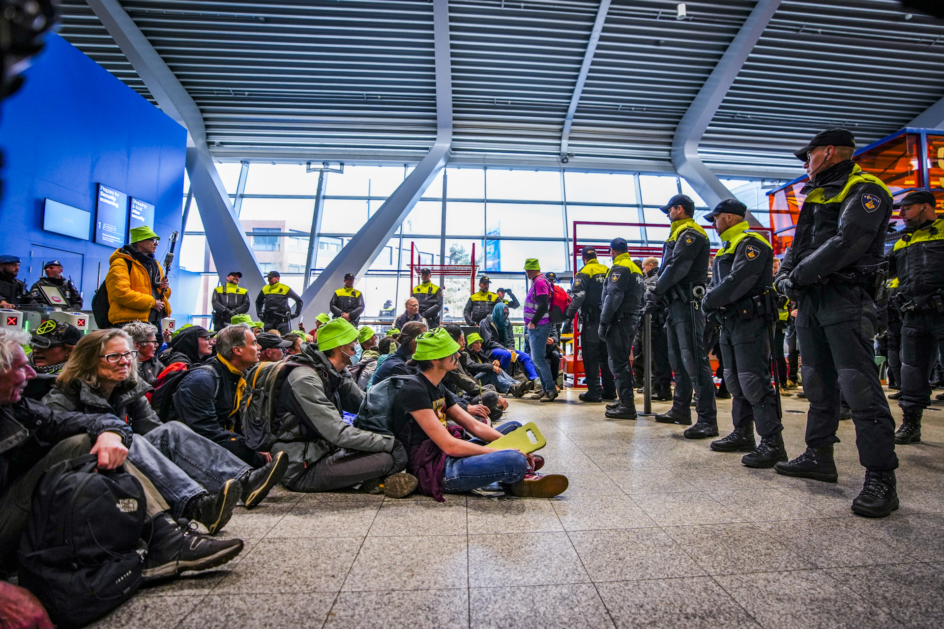 FOTOSERIE: Ruim 100 aanhoudingen bij klimaatprotest op Eindhoven Airport