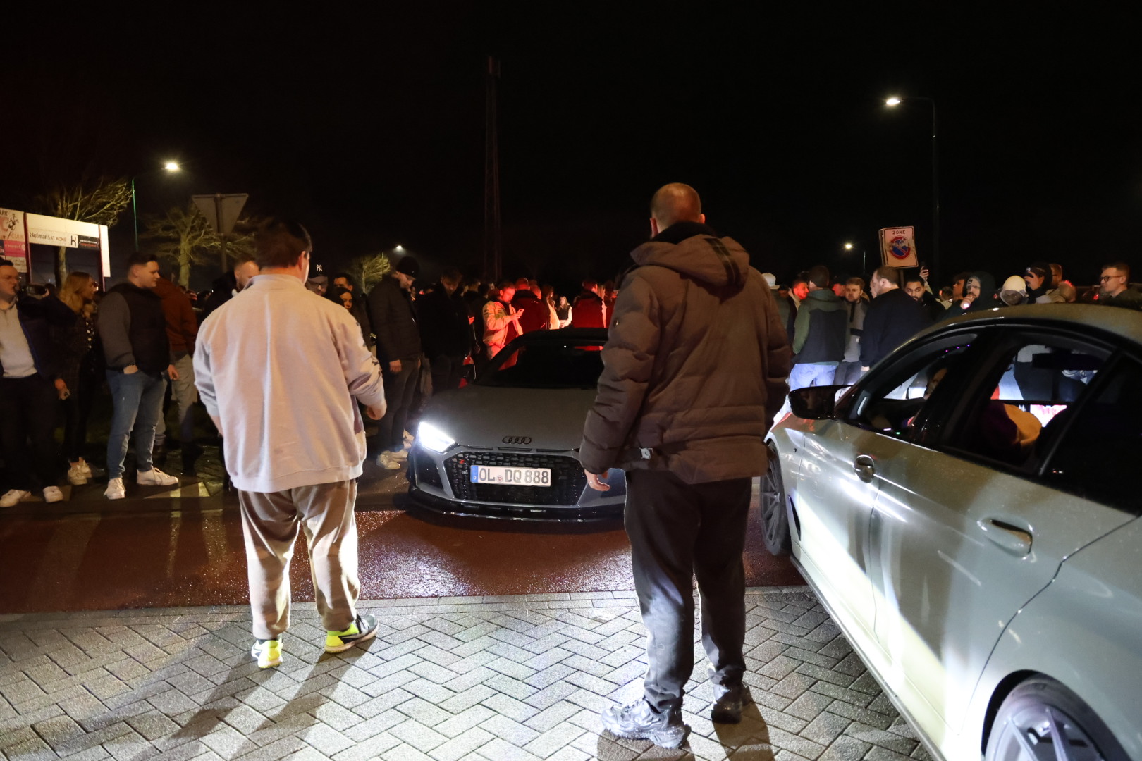 De sfeer wordt als vriendelijk omschreven, aldus de krant. Preventief is de politie in de omgeving actief, en een politiehelikopter patrouilleert boven het gebied. Opvallend is het grote aantal auto’s met Duitse kentekenplaten, naast Poolse en Nederlandse voertuigen. Deze auto’s zijn vaak aangepast met bijvoorbeeld opvallende spoilers. De berichtgeving vermeldt dat de groep deelnemers eerder die avond uit Kleef is verplaatst.