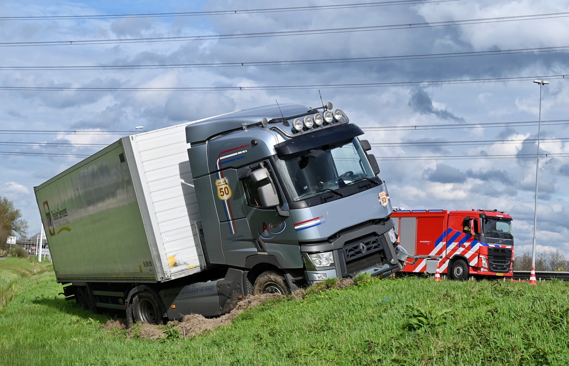 De bestuurder van de vrachtwagen is ongedeerd gebleven.