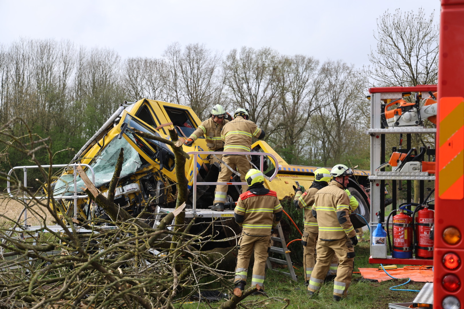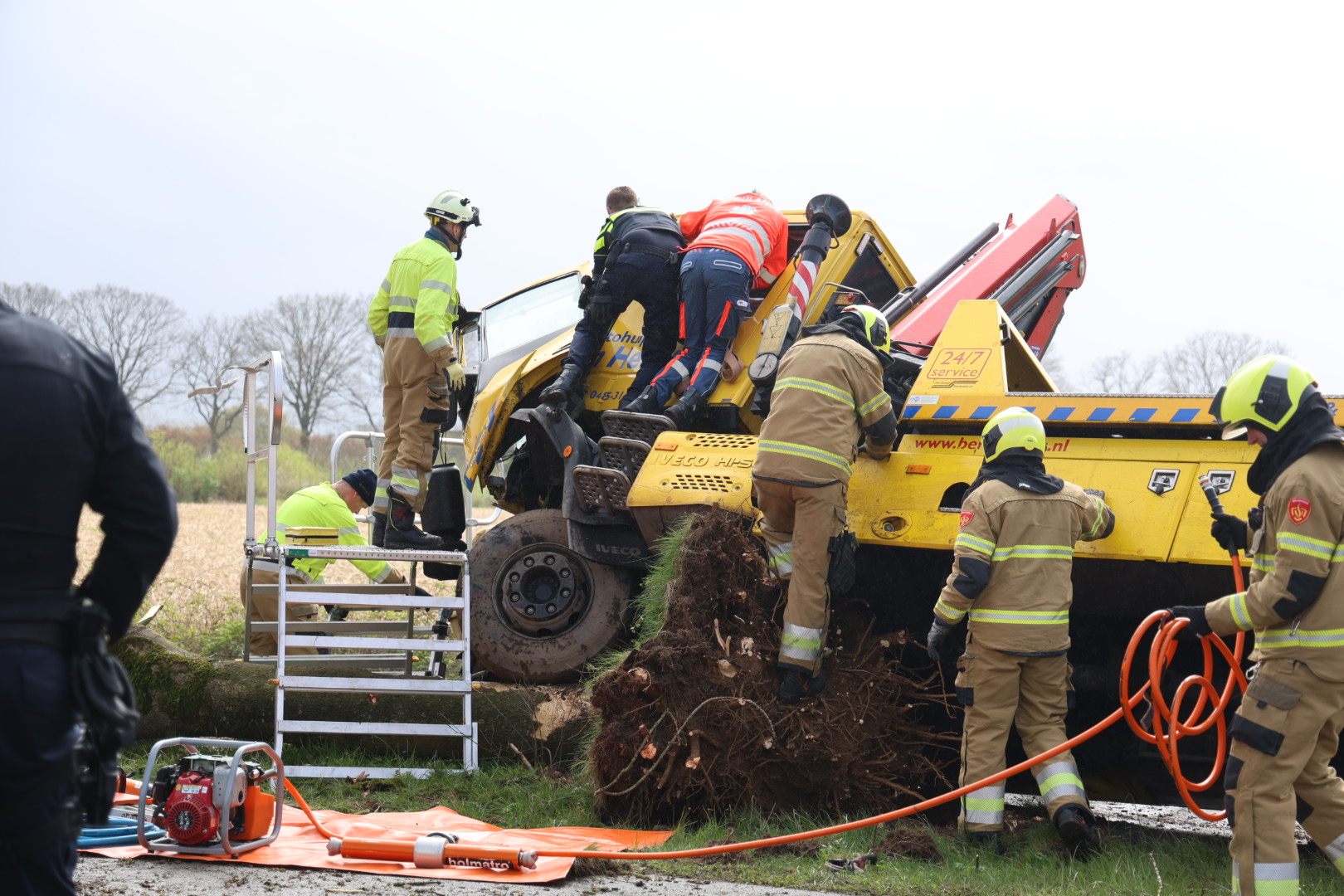 Grote ravage nadat takelwagen bomen ramt, chauffeur bekneld