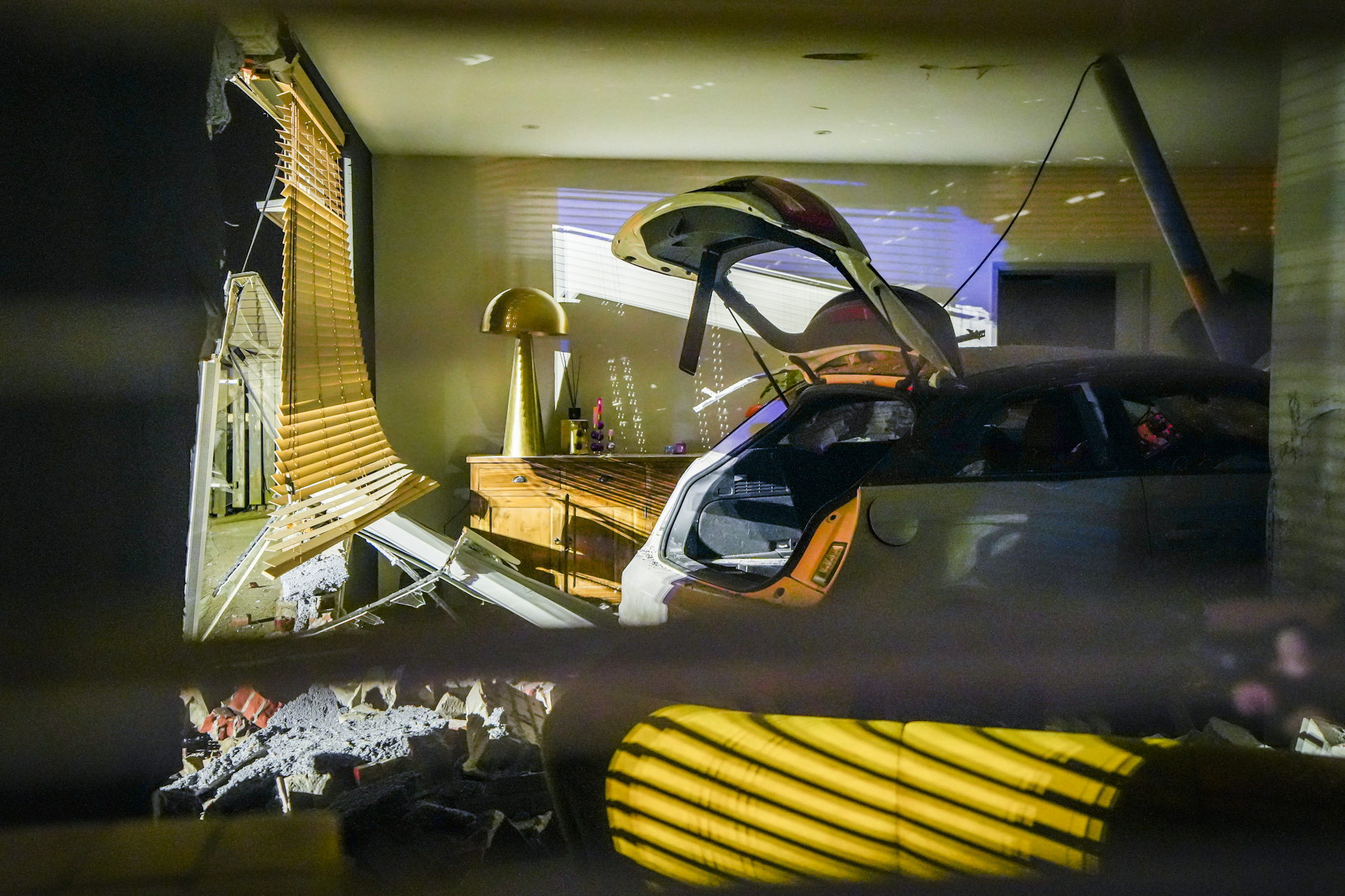 De auto ramde een lantarenpaal, en doorboorde vervolgens de gevel van een woning. Het voertuig kwam met de lantarenpaal nog op de motorkap tot stilstand midden in de woonkamer. Het had niet veel gescheeld of de auto was aan de andere kant het huis uit gekomen. Ook daar lagen brokstukken, en was de muur ontzet en een raam kapot. In de auto zat een vrouw, ze is door de brandweer bevrijd en naar het ziekenhuis gebracht.
