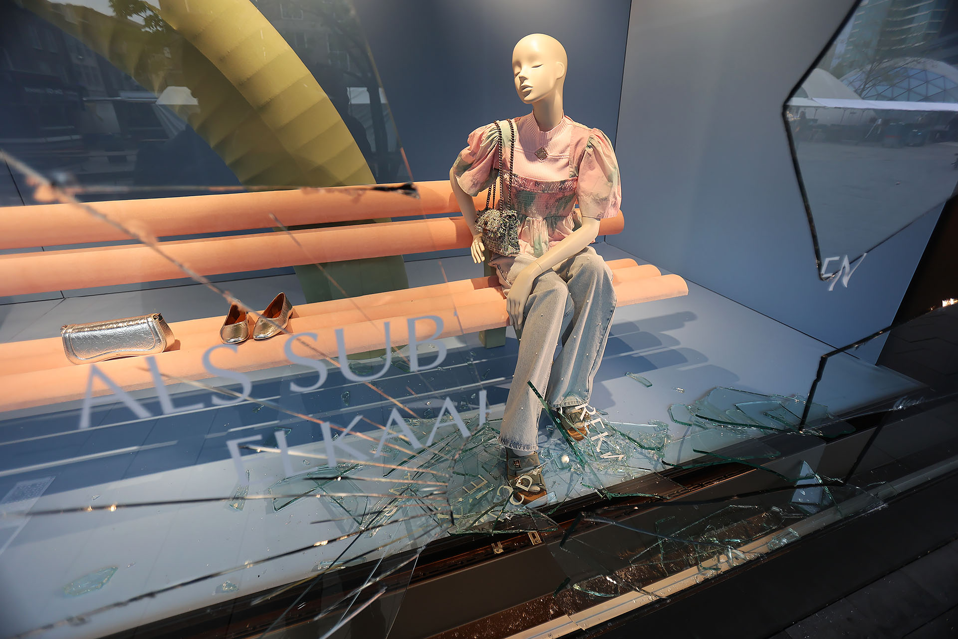 Etalageruit Bijenkorf ingetrapt, verdachte aangehouden