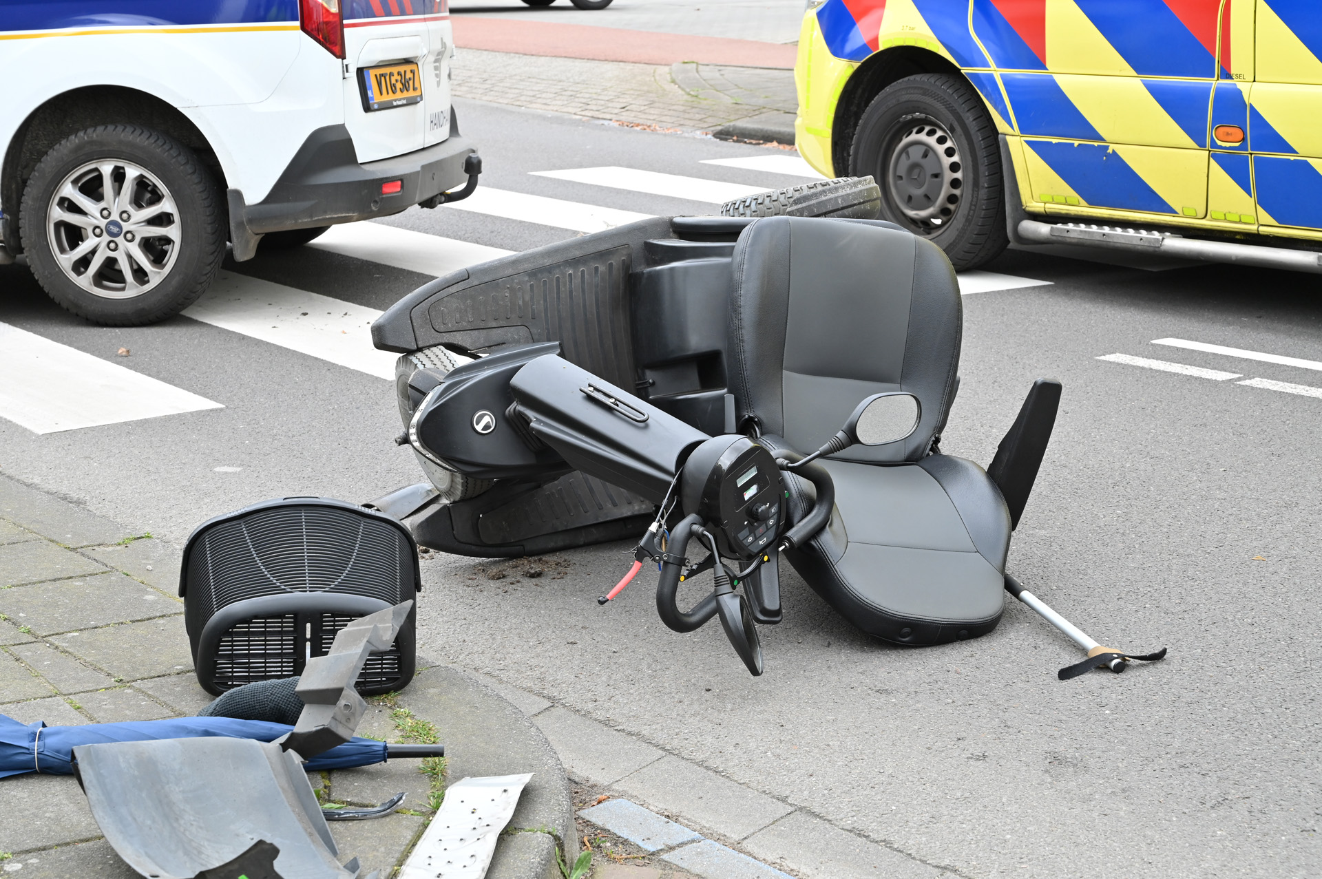 Een man op een scootmobiel werd aangereden door een auto. De man liep hierbij verwondingen op en werd ter plaatse door een ambulancepersoneel onderzocht, waarna hij naar het ziekenhuis is overgebracht voor verdere behandeling. De politie heeft de straat afgezet om de veiligheid te waarborgen heeft een onderzoek ingesteld naar de oorzaak van het ongeval.