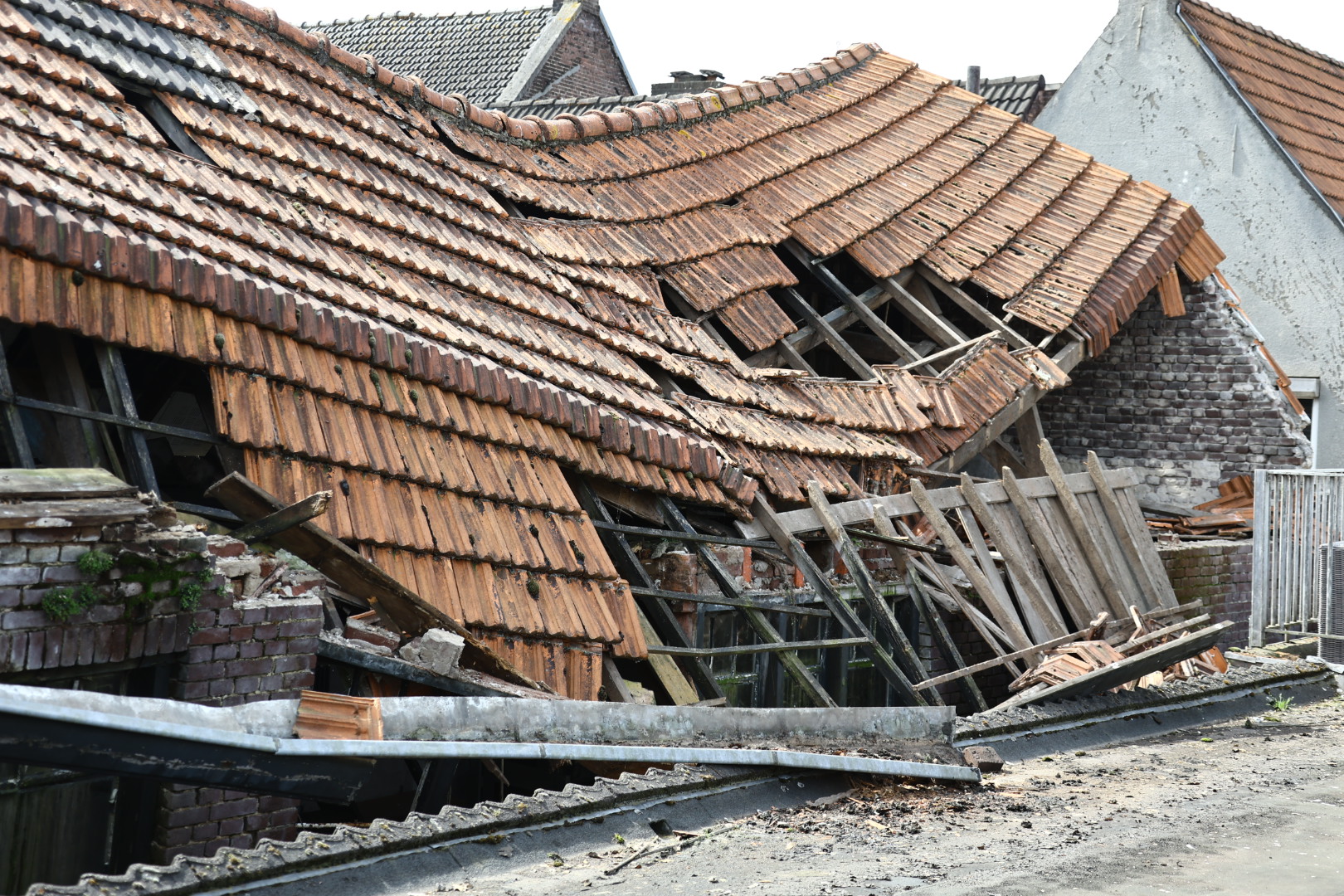 De brandweer, gemeente en de eigenaar zijn aanwezig. De Kerkstraat is afgesloten. De bewoners aan beide zijden worden verzocht om de woning te verlaten. De huldiensten zijn is namelijk bang dat het pand verder instort.