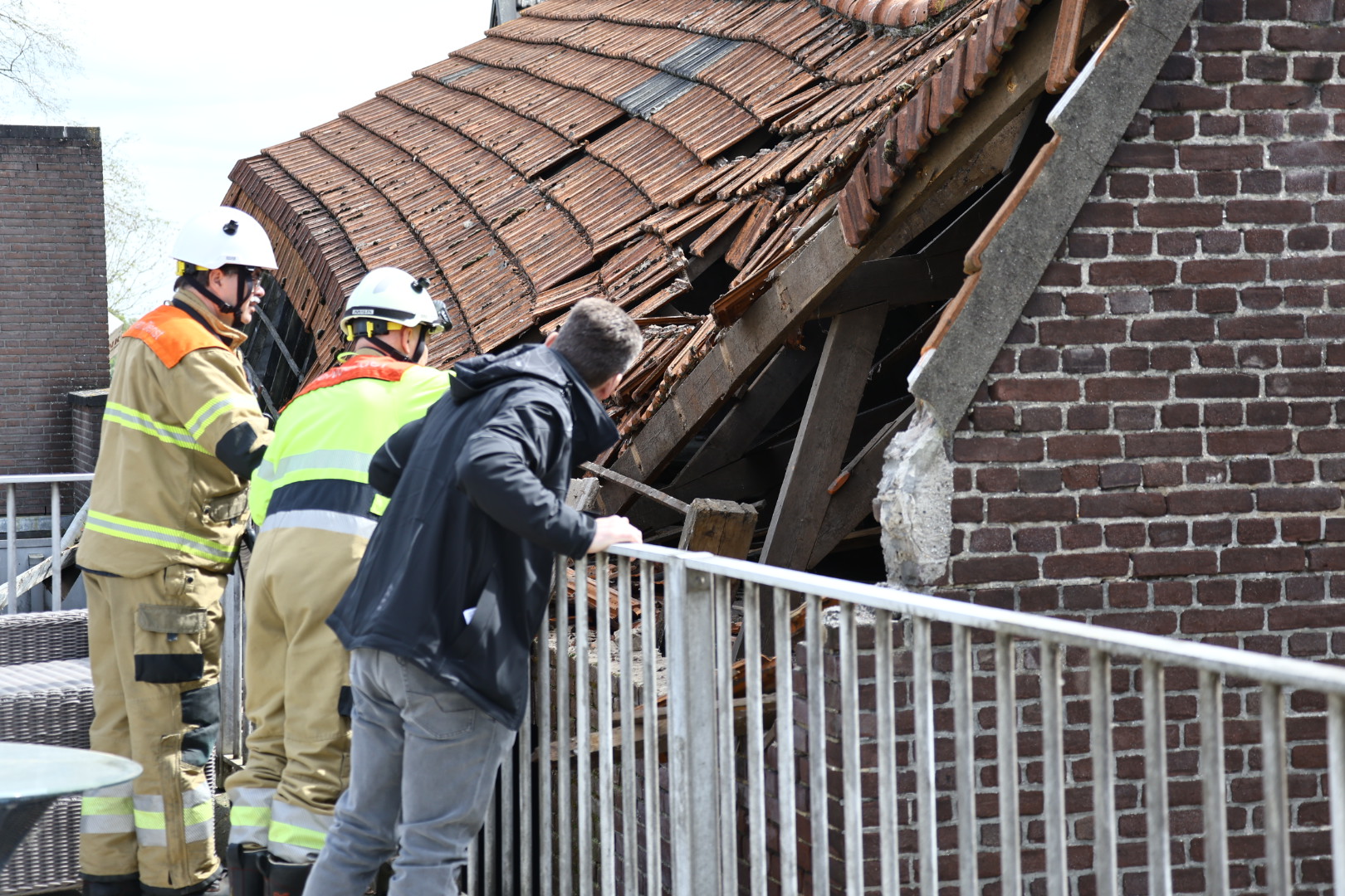 De brandweer, gemeente en de eigenaar zijn aanwezig. De Kerkstraat is afgesloten. De bewoners aan beide zijden worden verzocht om de woning te verlaten. De huldiensten zijn is namelijk bang dat het pand verder instort.