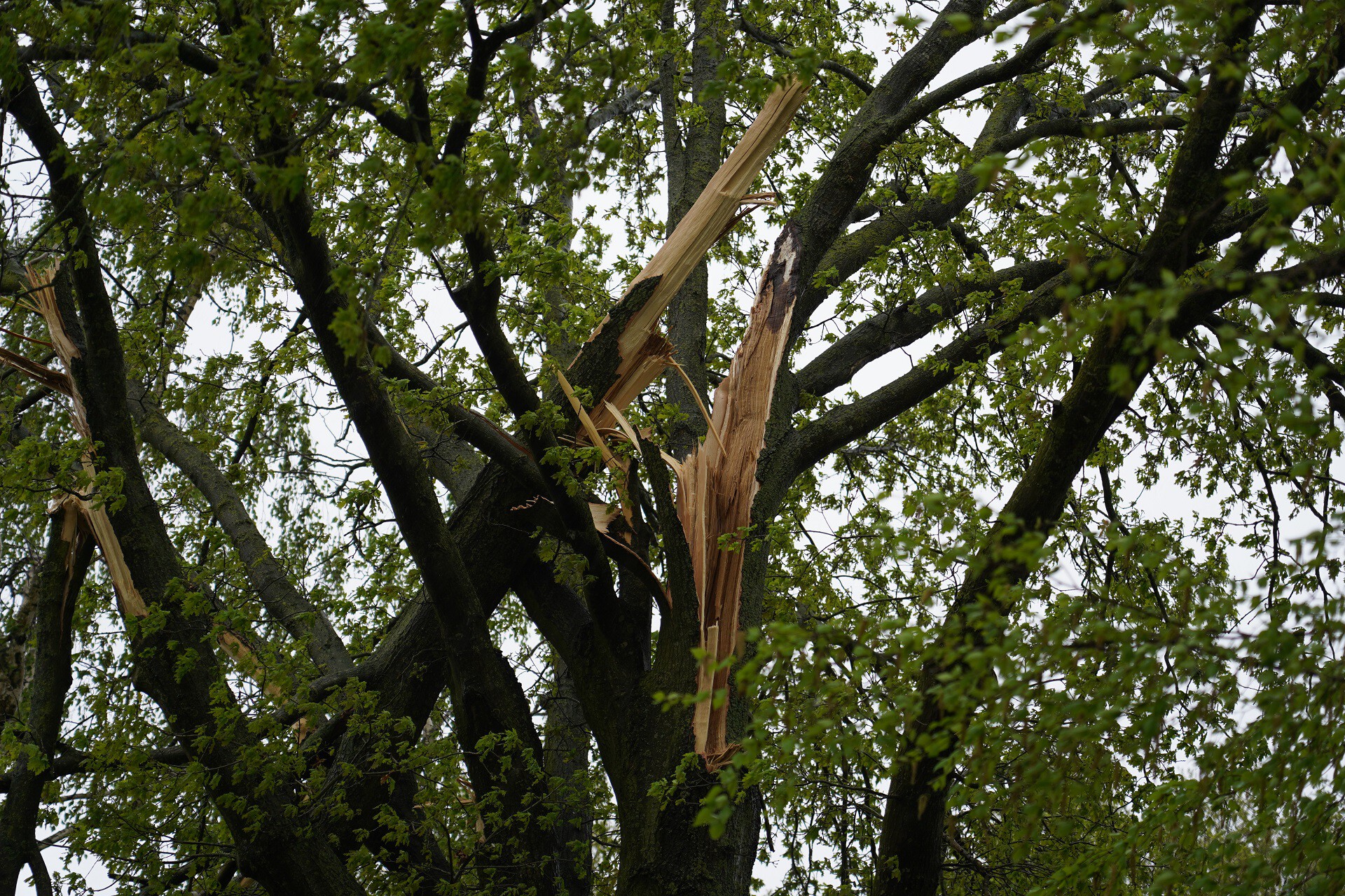 Boom ‘explodeert’ door blikseminslag, weg versperd