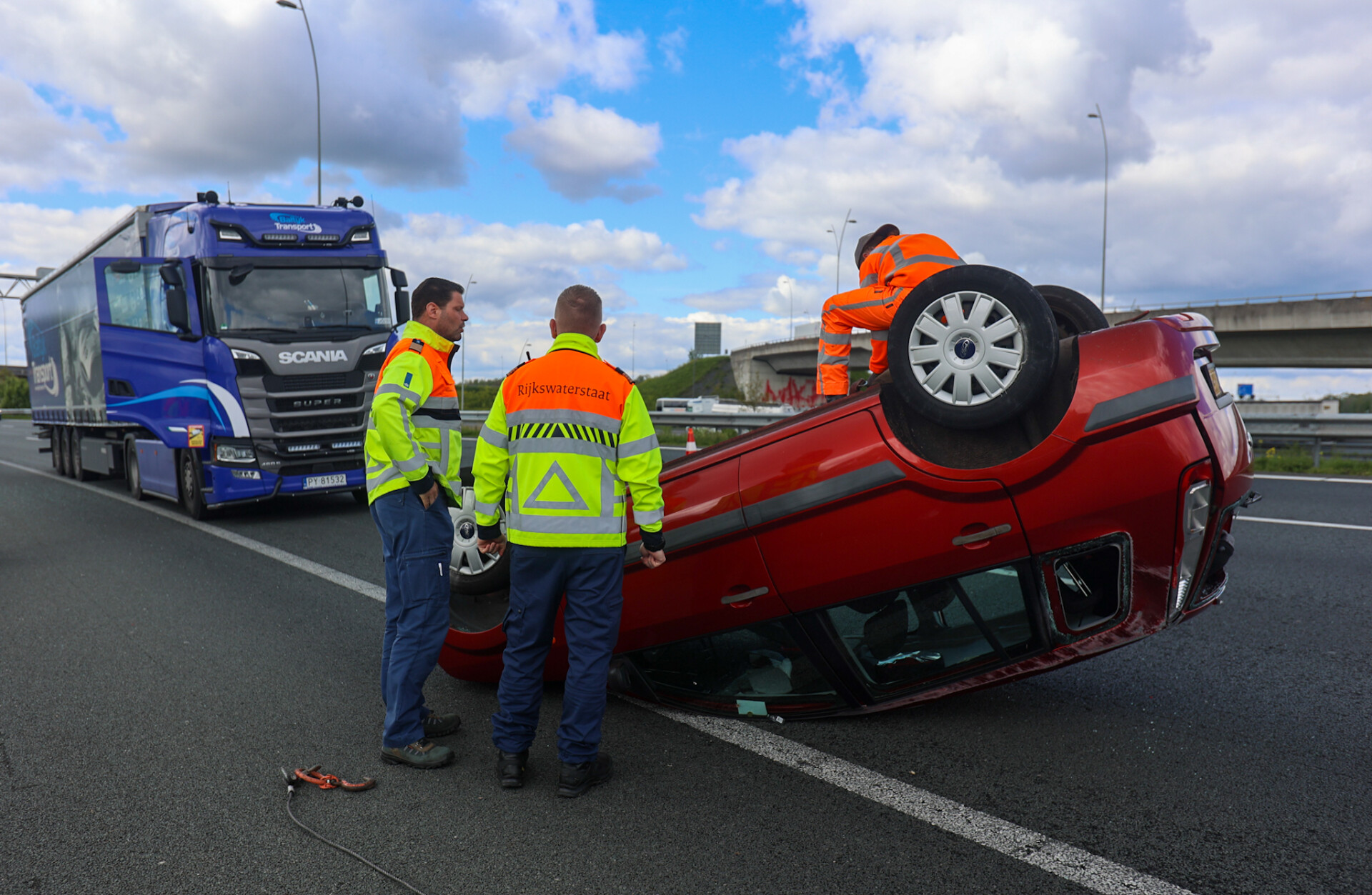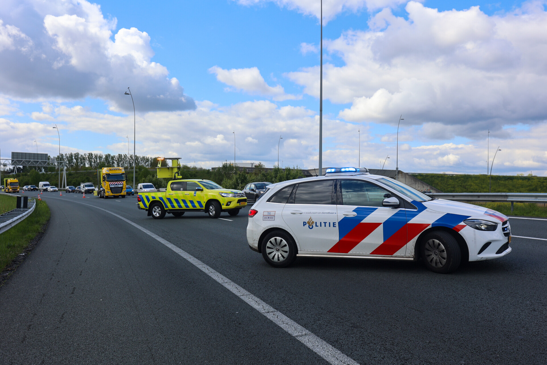 Rijkswaterstaat sloot een gedeelte van de snelweg af. Het verkeer kon over 1 rijbaan langs het ongeval passeren. De politie doet onderzoek naar de oorzaak van het ongeval.