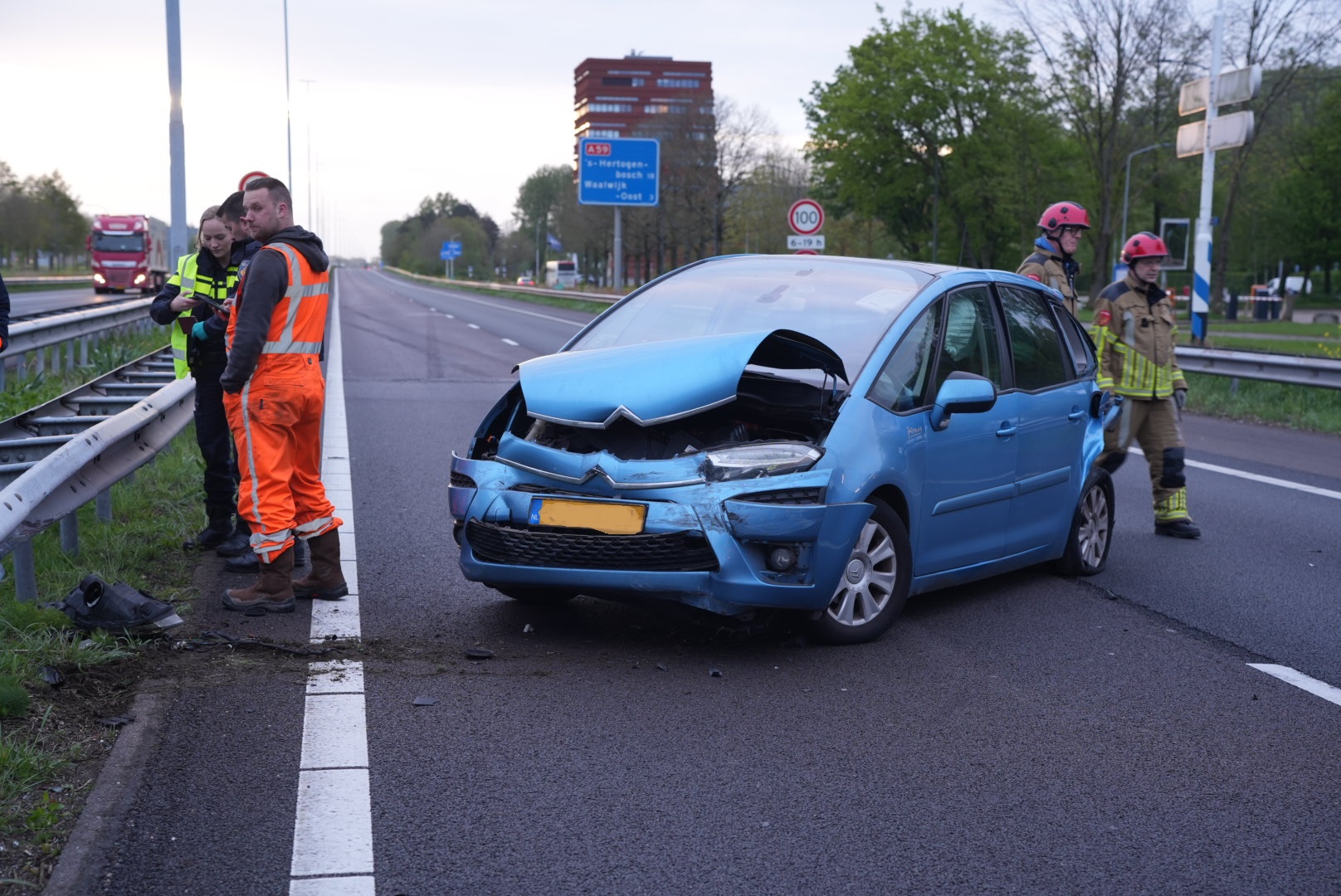 Twee auto’s botsten op elkaar; de passagier van de achterste auto raakte zwaargewond en is met spoed per ambulance naar het ziekenhuis vervoerd. De bestuurder van een van de auto’s is door de politie aangehouden en naar het bureau overgebracht. In de voorste auto, die werd aangereden, zaten een man en een vrouw. De vrouw is ter plaatse behandeld voor lichte verwondingen. Vanwege het ongeval zijn twee rijstroken op de A59 afgesloten, waardoor het verkeer over de vluchtstrook wordt geleid.