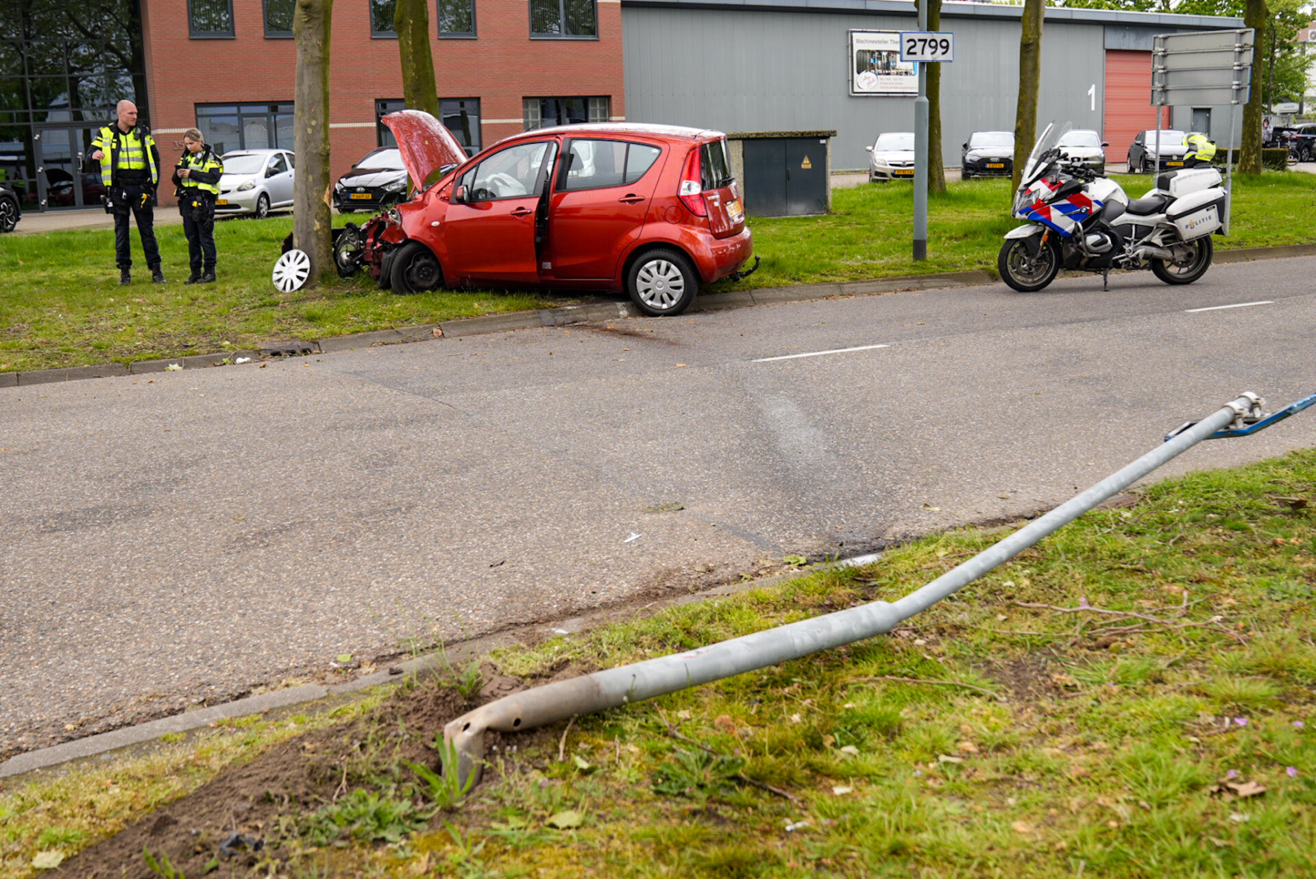 Geplaatst op 22 april 2024, om 16:20 uurHELMOND – Op het industrieterrein bij de Achterdijk gebeurde een ongeval waarbij een jonge vrouw betrokken was. Ze wilde de Lagedijk inslaan, maar gaf vermoedelijk gas in plaats van te remmen. Hierdoor verloor ze de controle over haar auto, reed over een schrikblok, ramde een straatnaambord en kwam uiteindelijk tegen een boom tot stilstand.