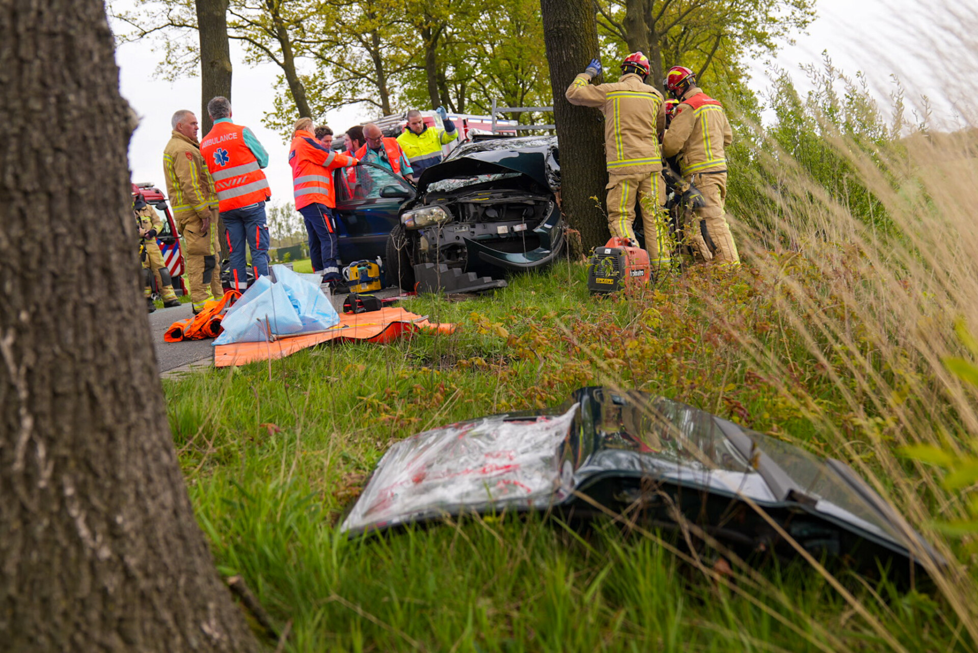Automobilist gewond na botsing tegen boom, trauma helikopter geland