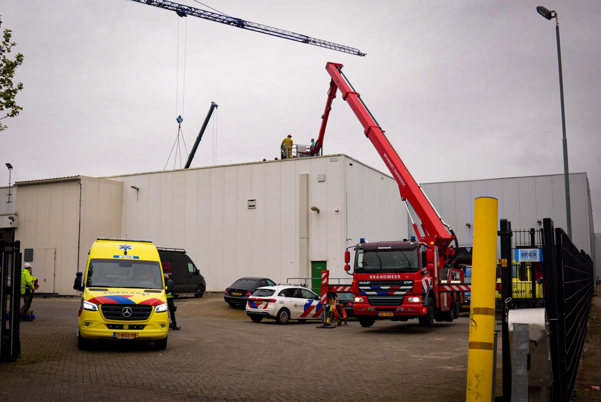 Hij is met een ambulance naar het ziekenhuis. Bij het bedrijf vinden momenteel werkzaamheden plaats op het dak.