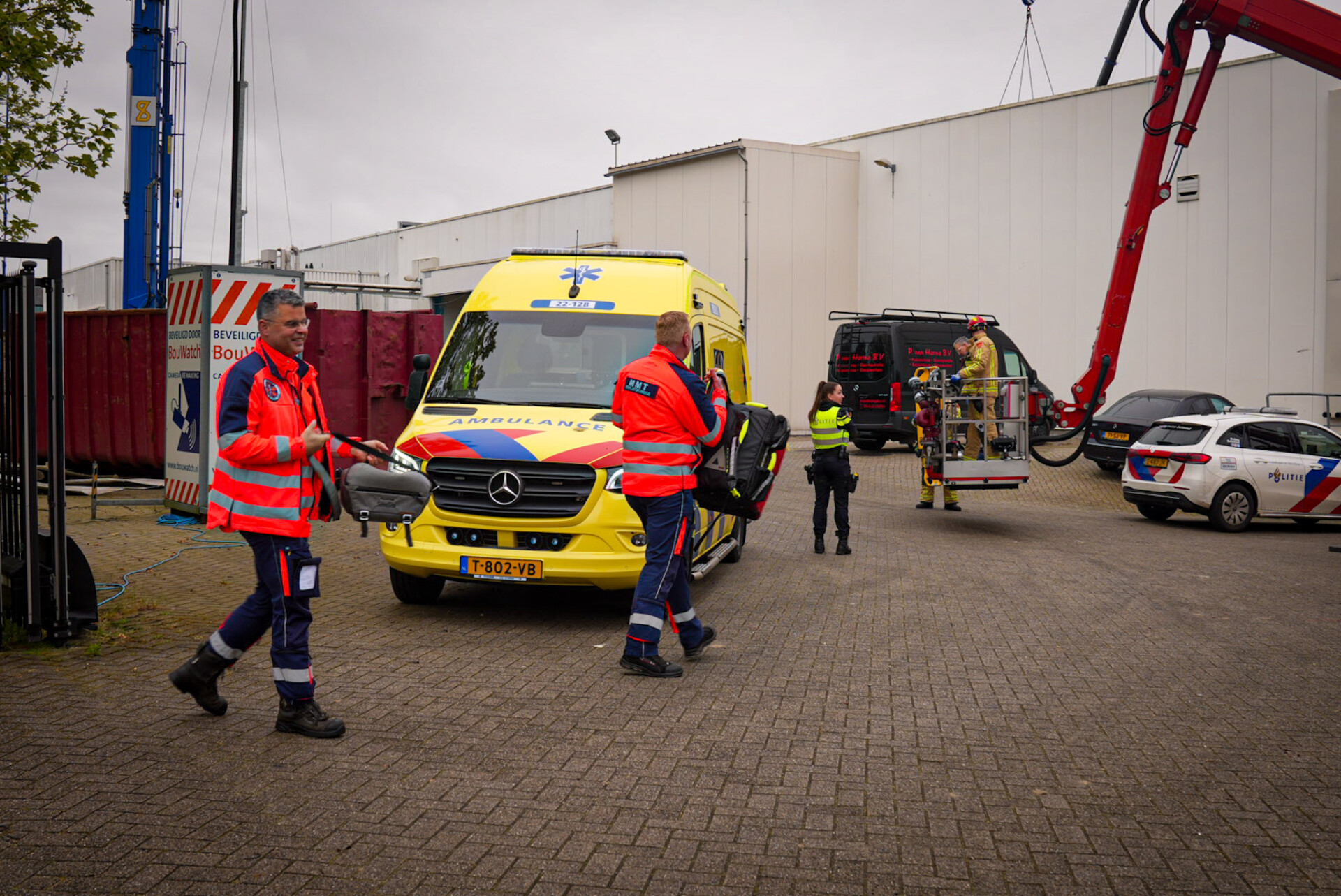 Hij is met een ambulance naar het ziekenhuis. Bij het bedrijf vinden momenteel werkzaamheden plaats op het dak.