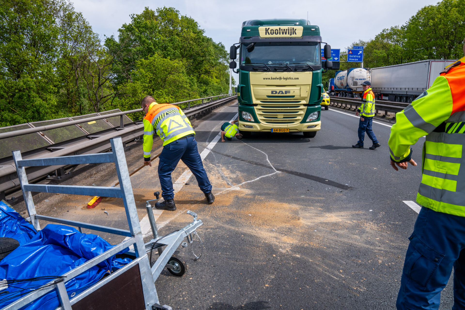 Veel te zware aanhanger schaart, hele snelweg geblokkeerd