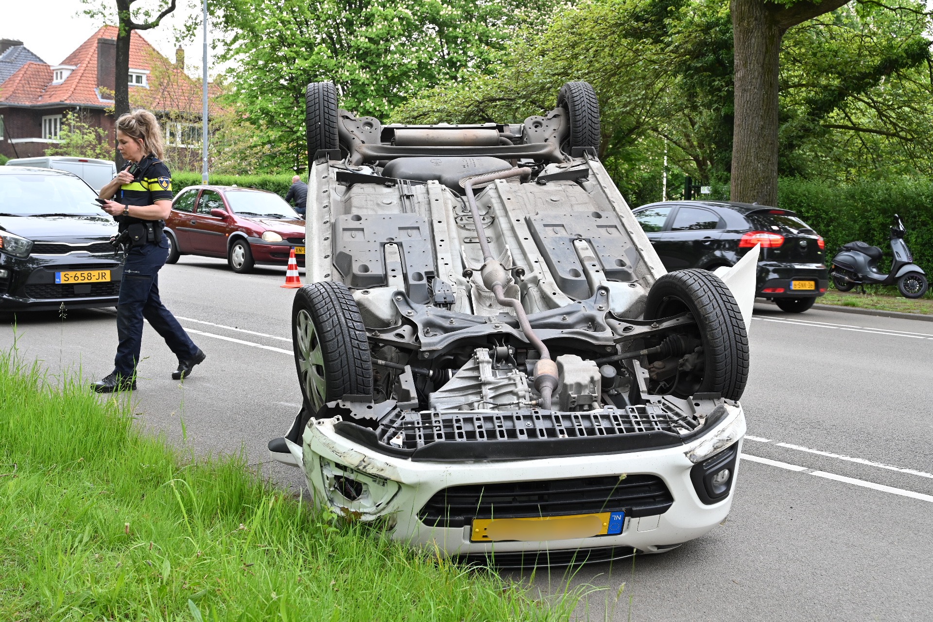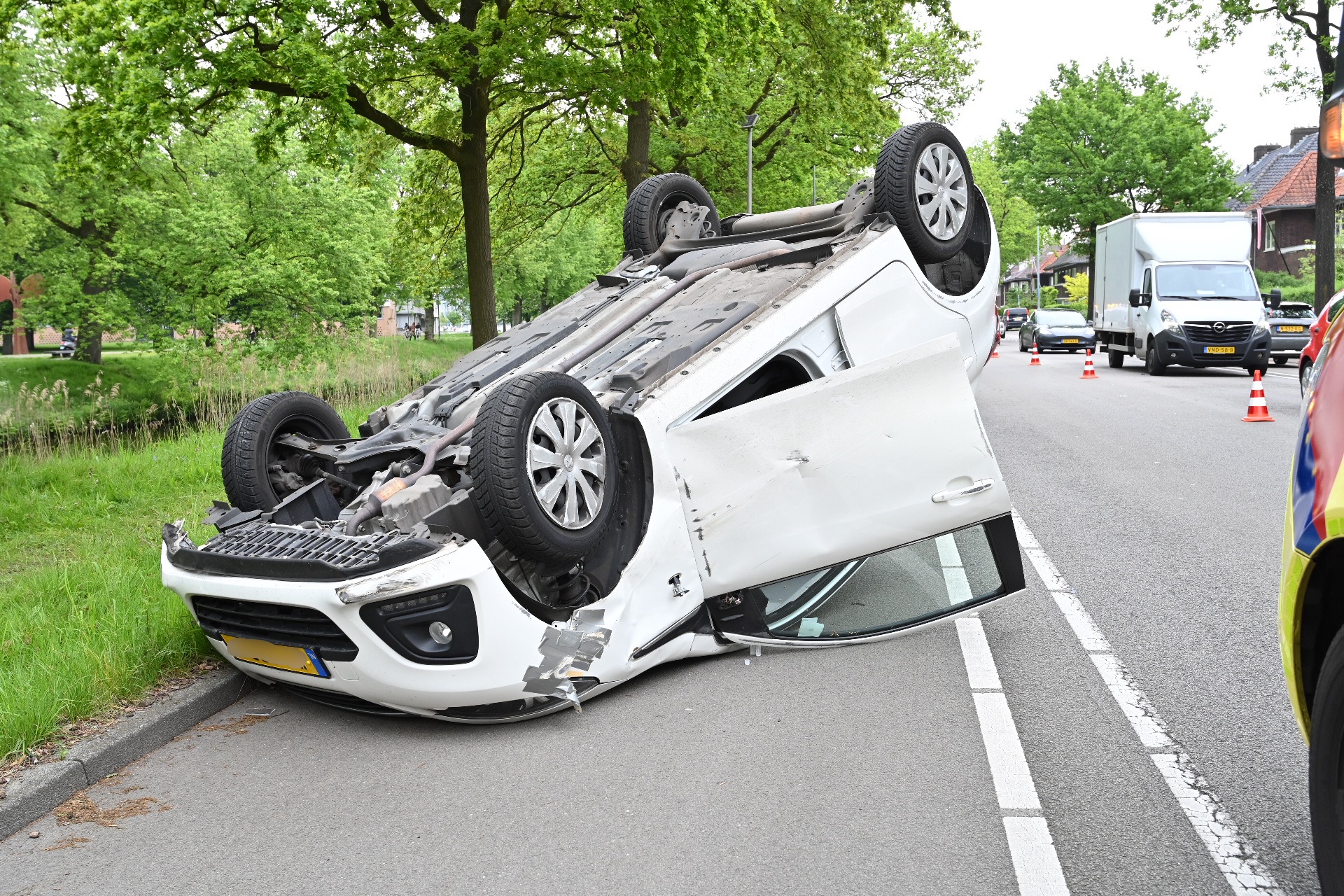 BREDA – Een automobiliste is maandagmiddag met haar auto op zijn kop terecht gekomen. Een omstander haalde haar uit de auto.
