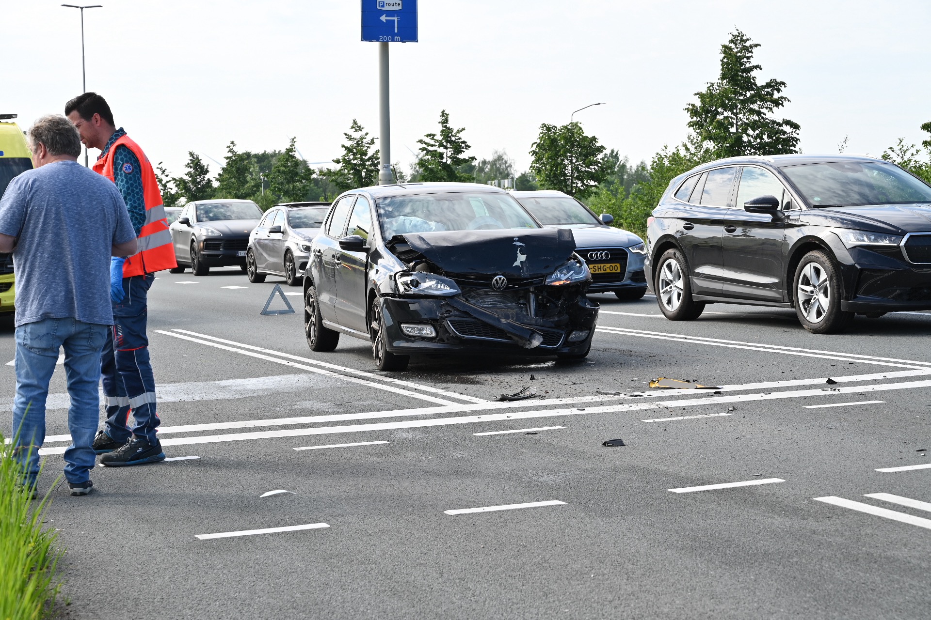 De auto raakte hierbij zwaar beschadigd en is door een berger getakeld. De bestuurder raakte niet gewond. Een dame in het busje werd in de ambulance nagekeken en gecontroleerd op mogelijke verwondingen. Ze kon hierna weer verder.