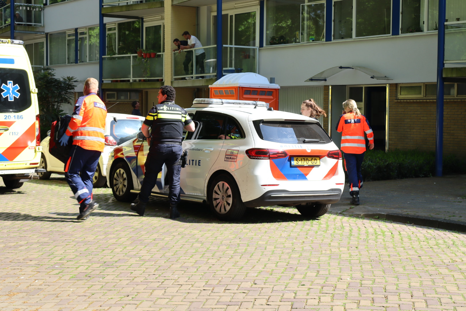 Hij is met spoed naar het ziekenhuis vervoerd. De politie heeft een andere bewoner van het complex aangehouden. De exacte toedracht van het incident is nog onbekend.