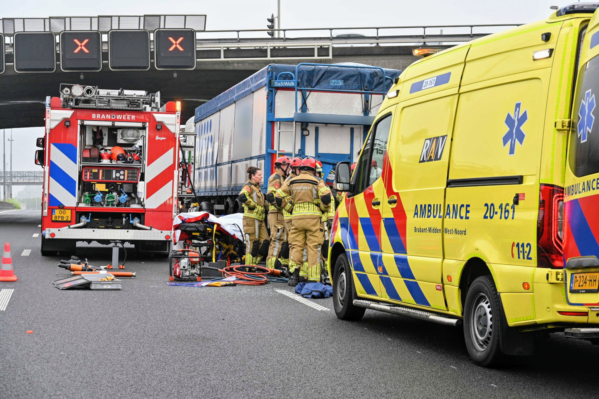 Bestuurder bekneld na ongeluk met bestelbus en vrachtwagen, A16 deels afgesloten