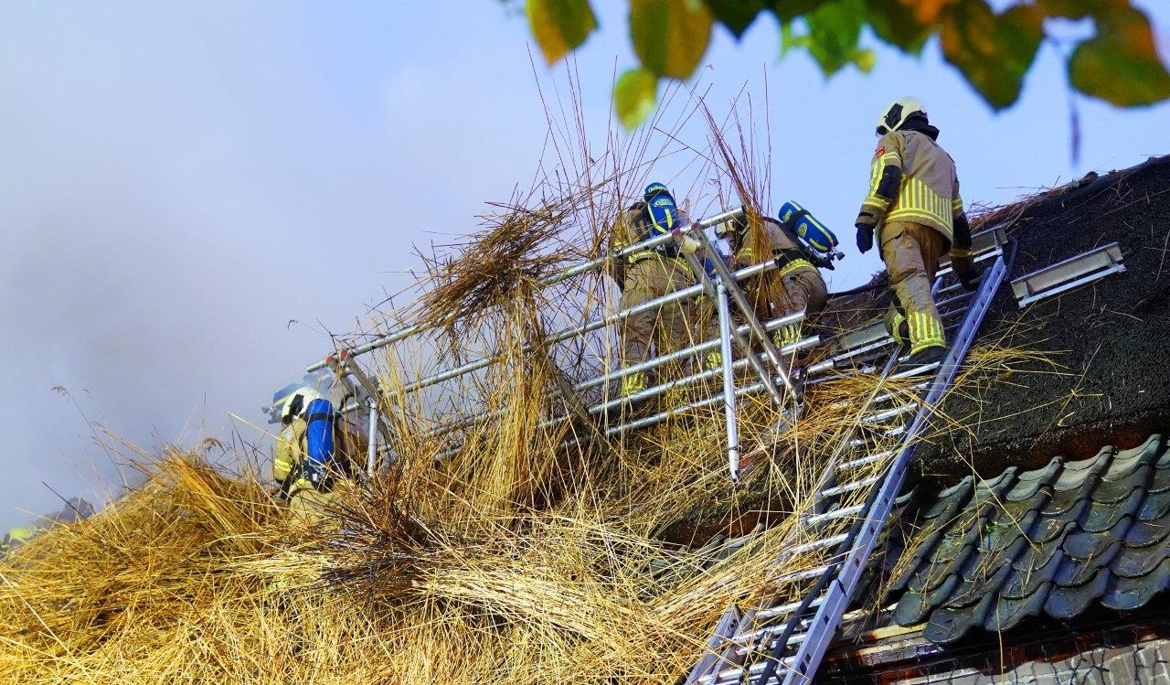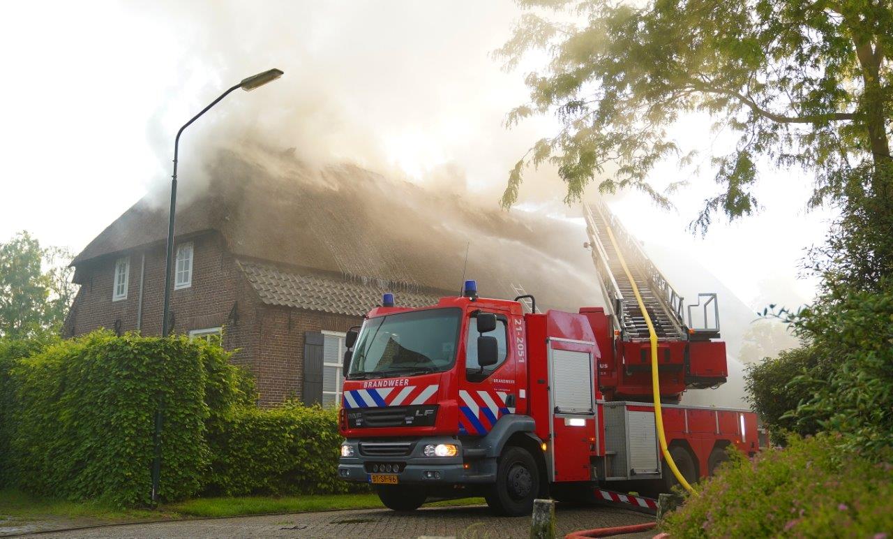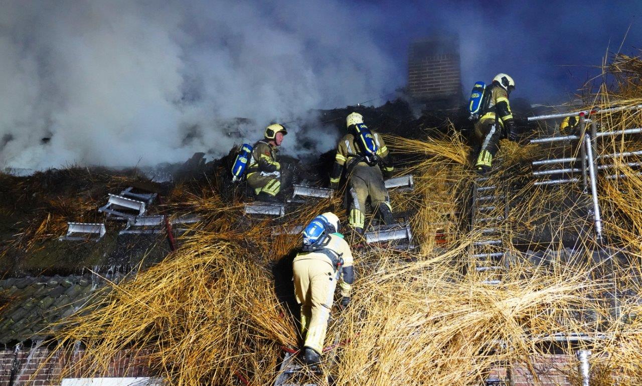 Grote brand na blikseminslag in boerderij met rieten dak