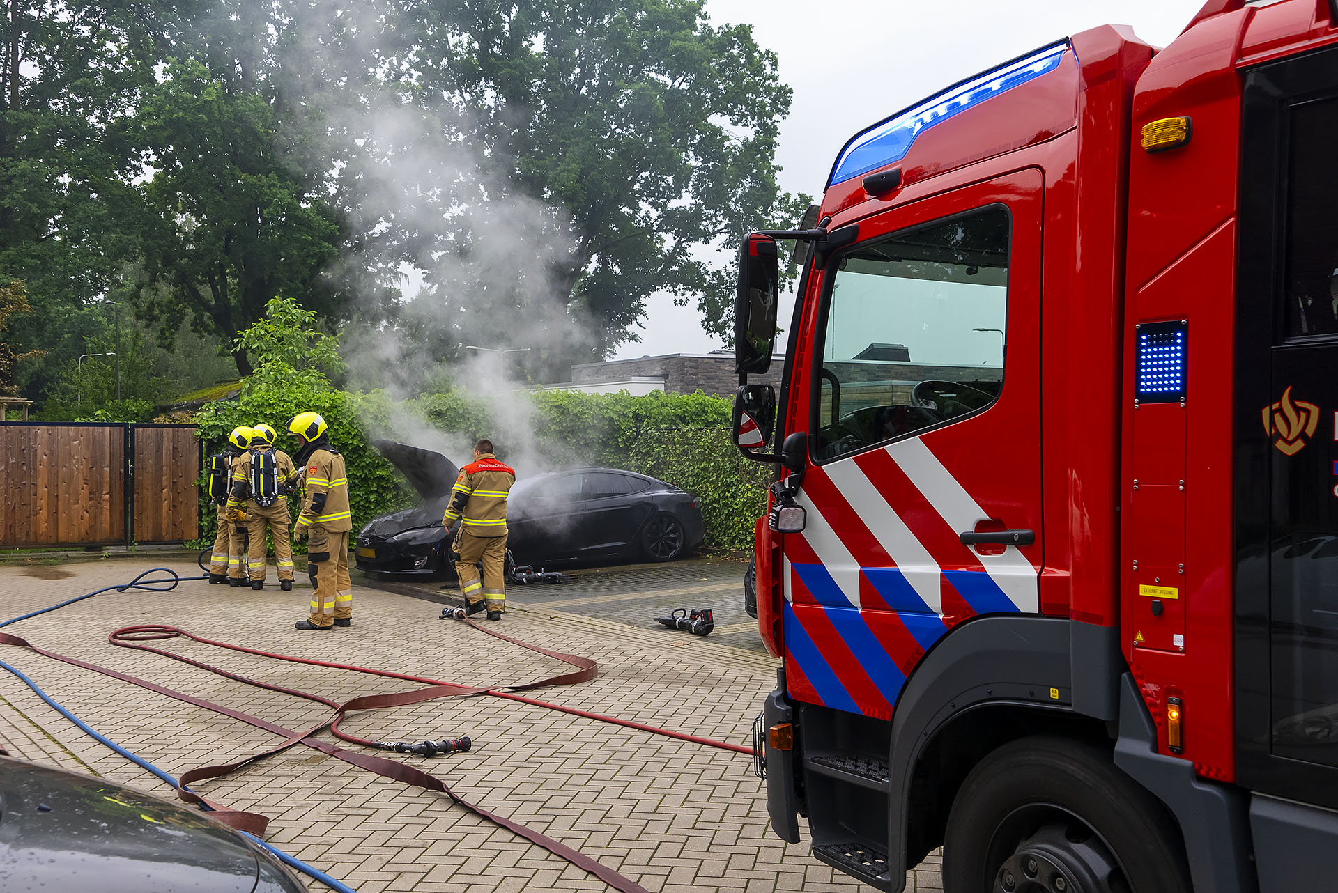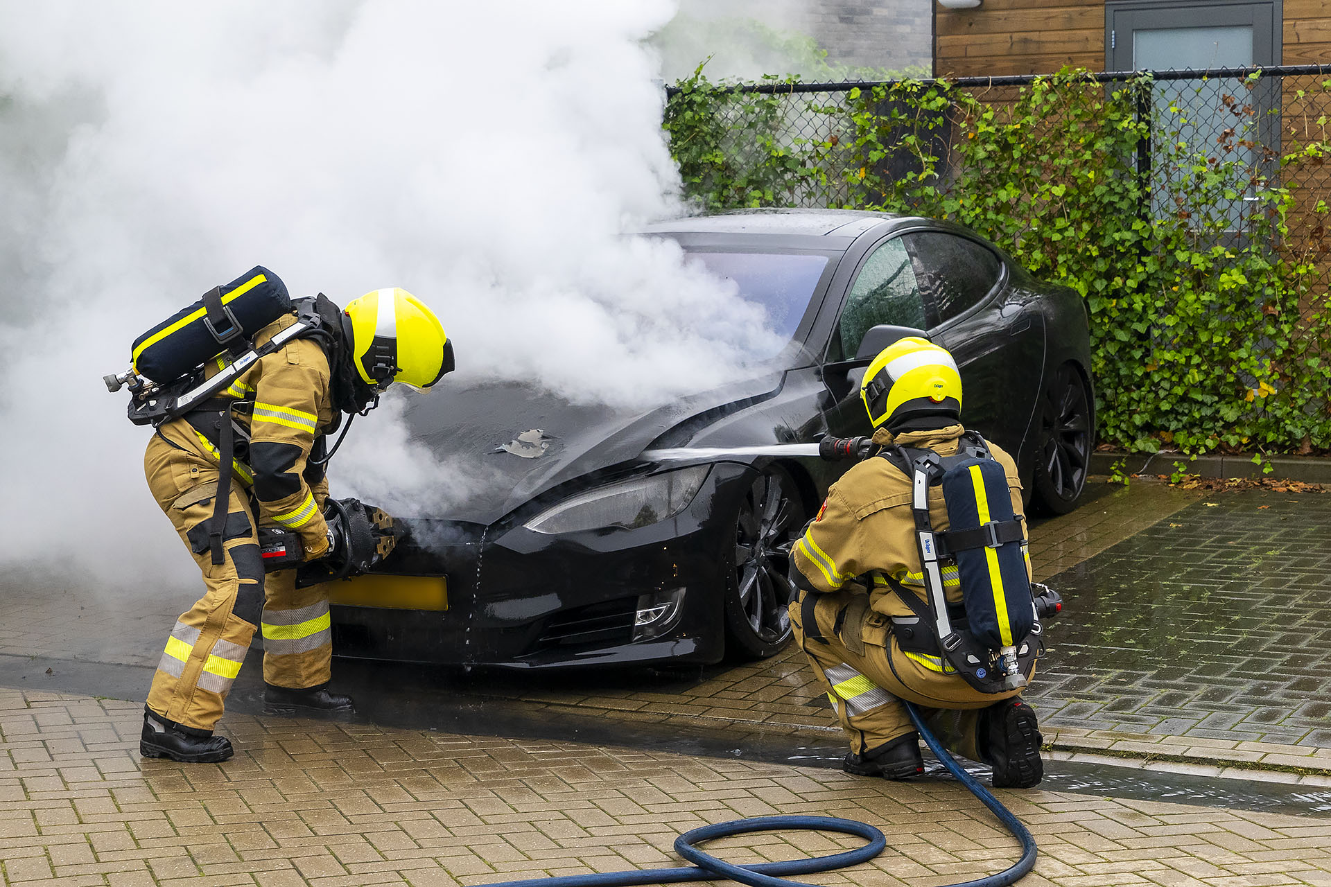Omdat de brandweerlieden vanwege de wekelijkse oefenavond al op de kazerne aanwezig waren kon snel worden uitgerukt en waren ze binnen no-time ter plaatse. Met hydraulisch gereedschap werd de ‘motorkap’ van de Tesla opengebroken. De brandweer had de brand snel onder controle.