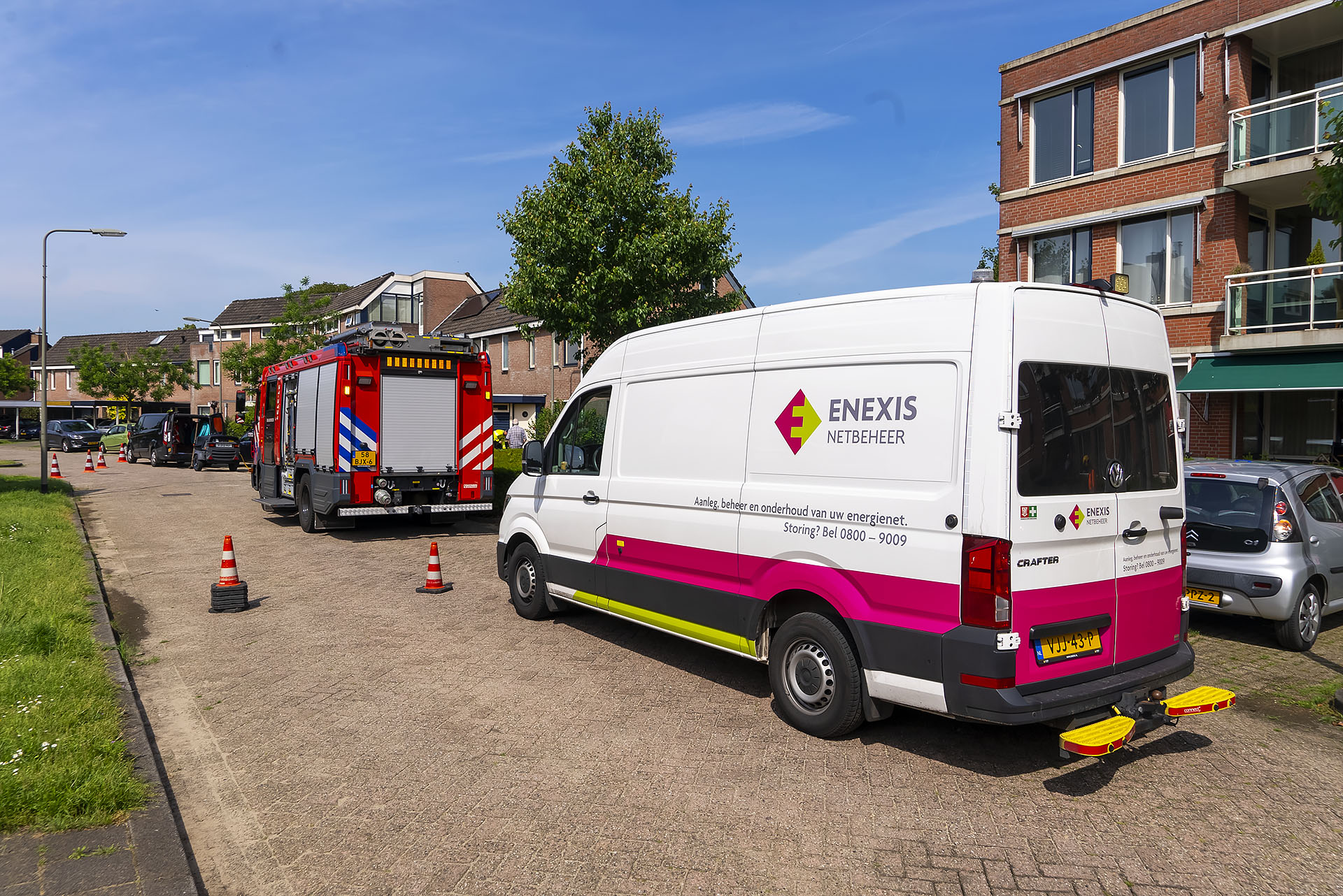Medewerkers van netbeheerder Enexis zijn ter plaatse gekomen voor het herstel van de leiding.