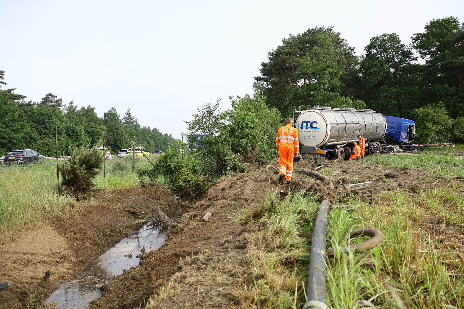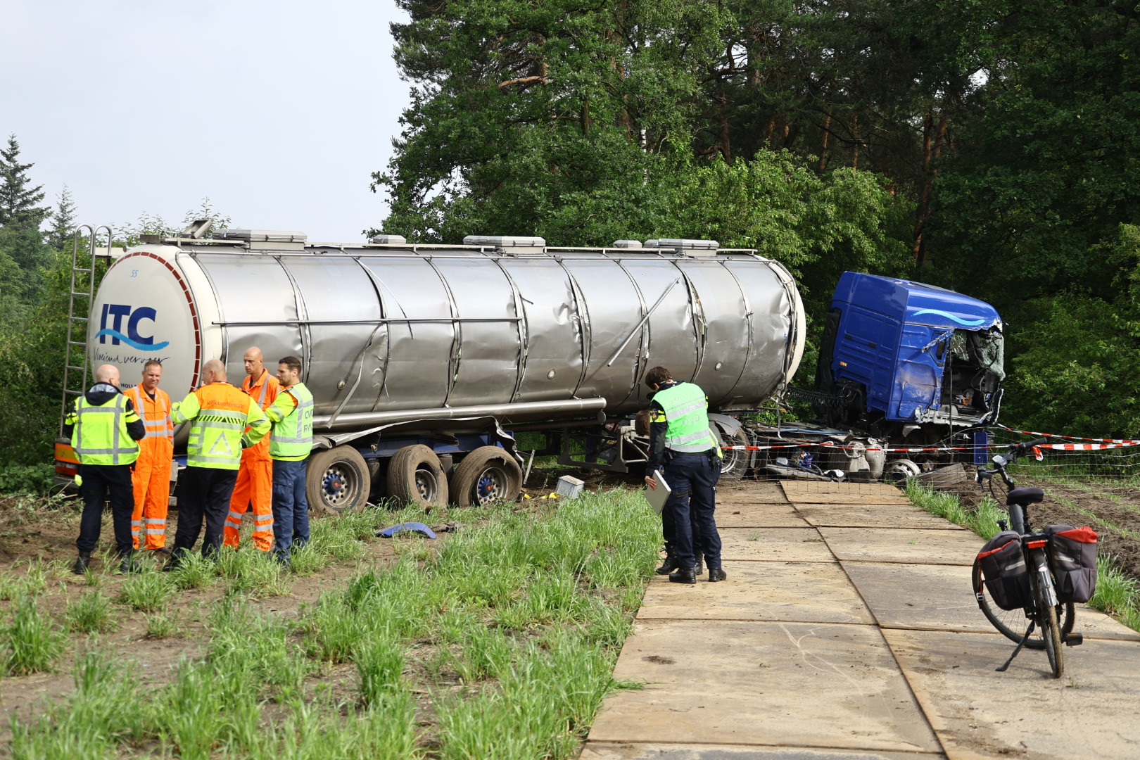 Een van de vrachtwagens schoot van de weg en kwam tot stilstand in een weiland, waarbij aanzienlijke schade ontstond. De chauffeur is met onbekende verwondingen naar het ziekenhuis gebracht. Meerdere hulpverleners zijn ter plaatse, aldus De Gelderlander.