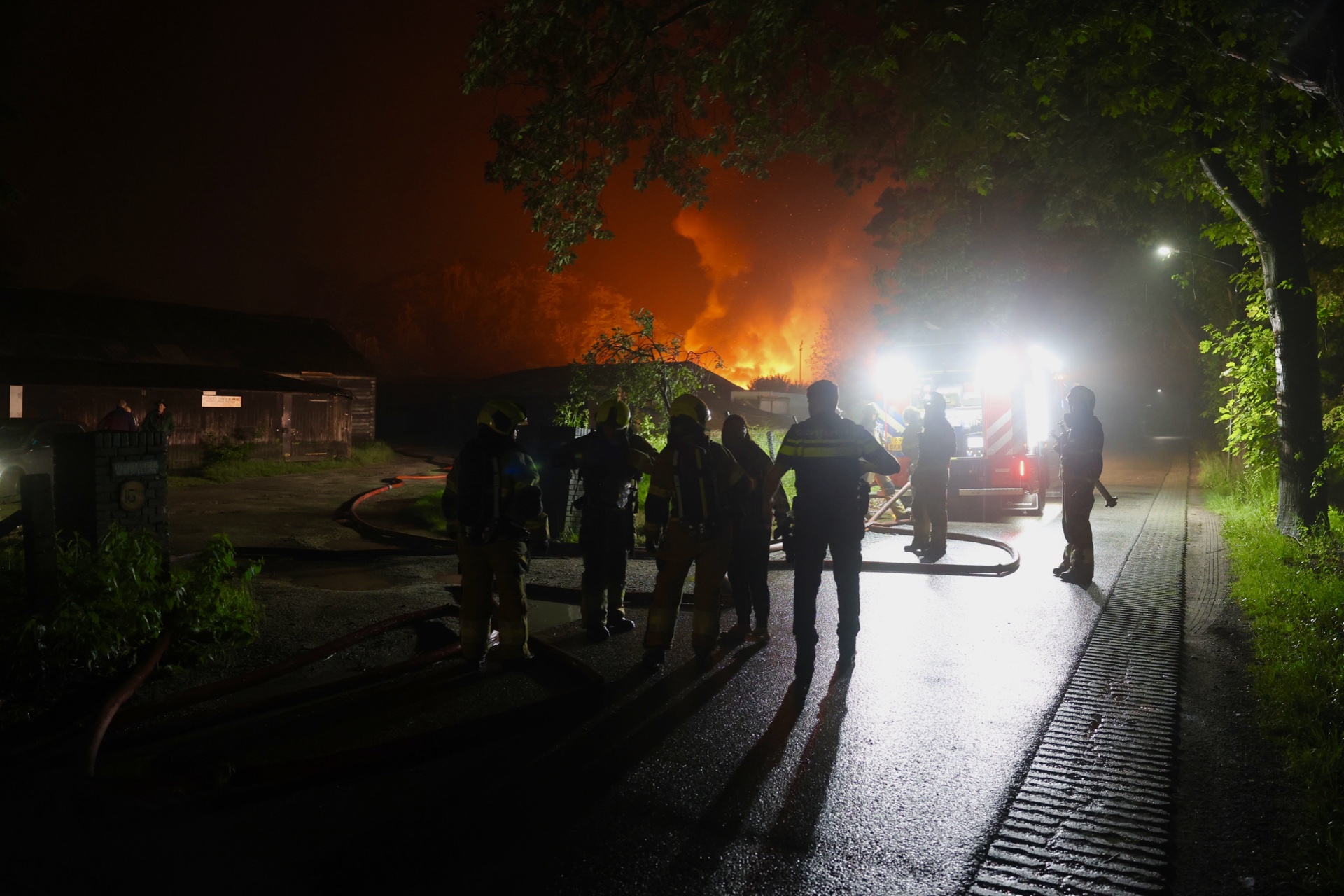 BOXTEL – In de nacht van vrijdag op zaterdag brak een felle brand uit in een loods aan de Mezenlaan in Boxtel. Rond 0.35 uur werd de uitslaande brand opgemerkt en groot alarm geslagen. De brandweer schaalde op naar grote brand en rukte uit met drie tankautospuiten en twee waterwagens. Een ladderwagen kwam ter plaatse maar werd niet ingezet. Ook de regionale ademluchtcontainer was aanwezig.