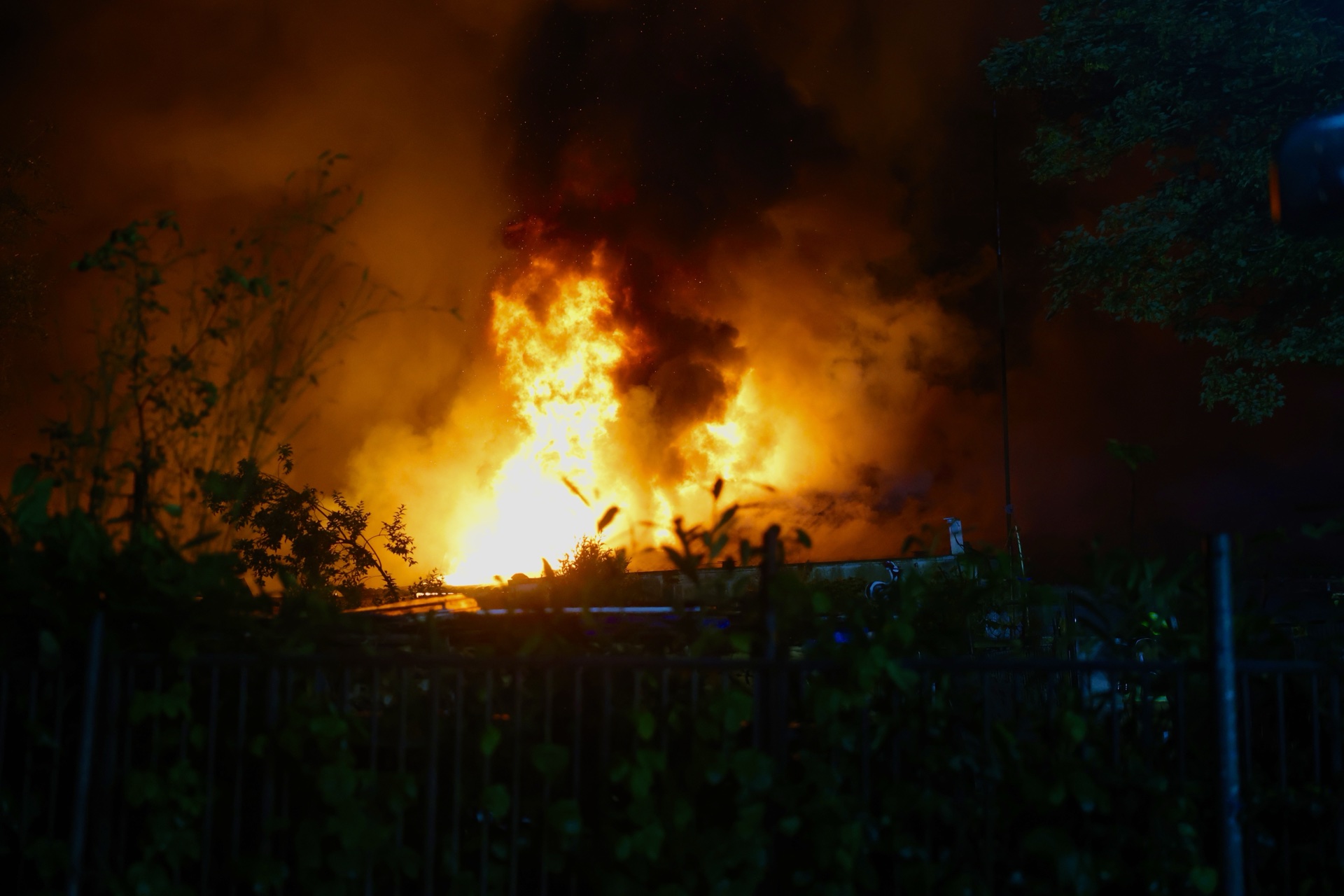 Grote uitslaande brand in opslagloods