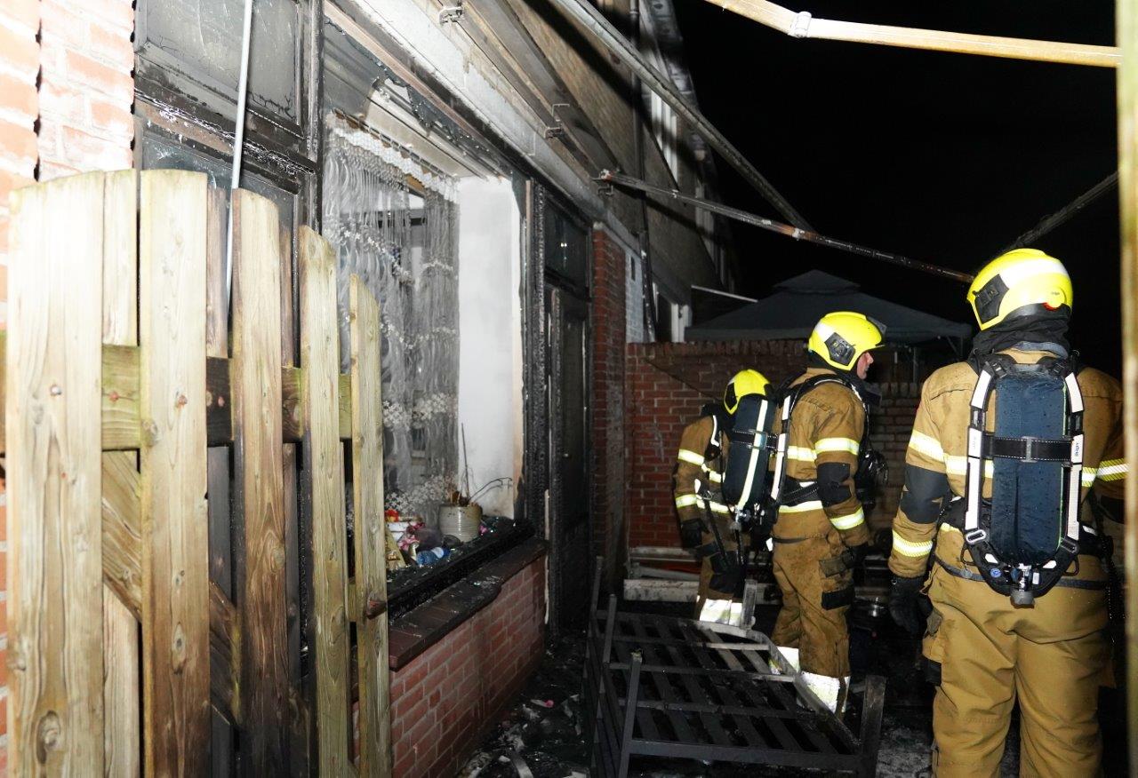 Bij aankomst van de brandweer had het vuur al overgeslagen naar de woning, waardoor de ramen aan de achterkant van het huis waren gesprongen. Ondanks dat de brandweer de brand snel onder controle had, kon niet worden voorkomen dat de woning onbewoonbaar raakte. De oorzaak van de brand is nog onbekend.