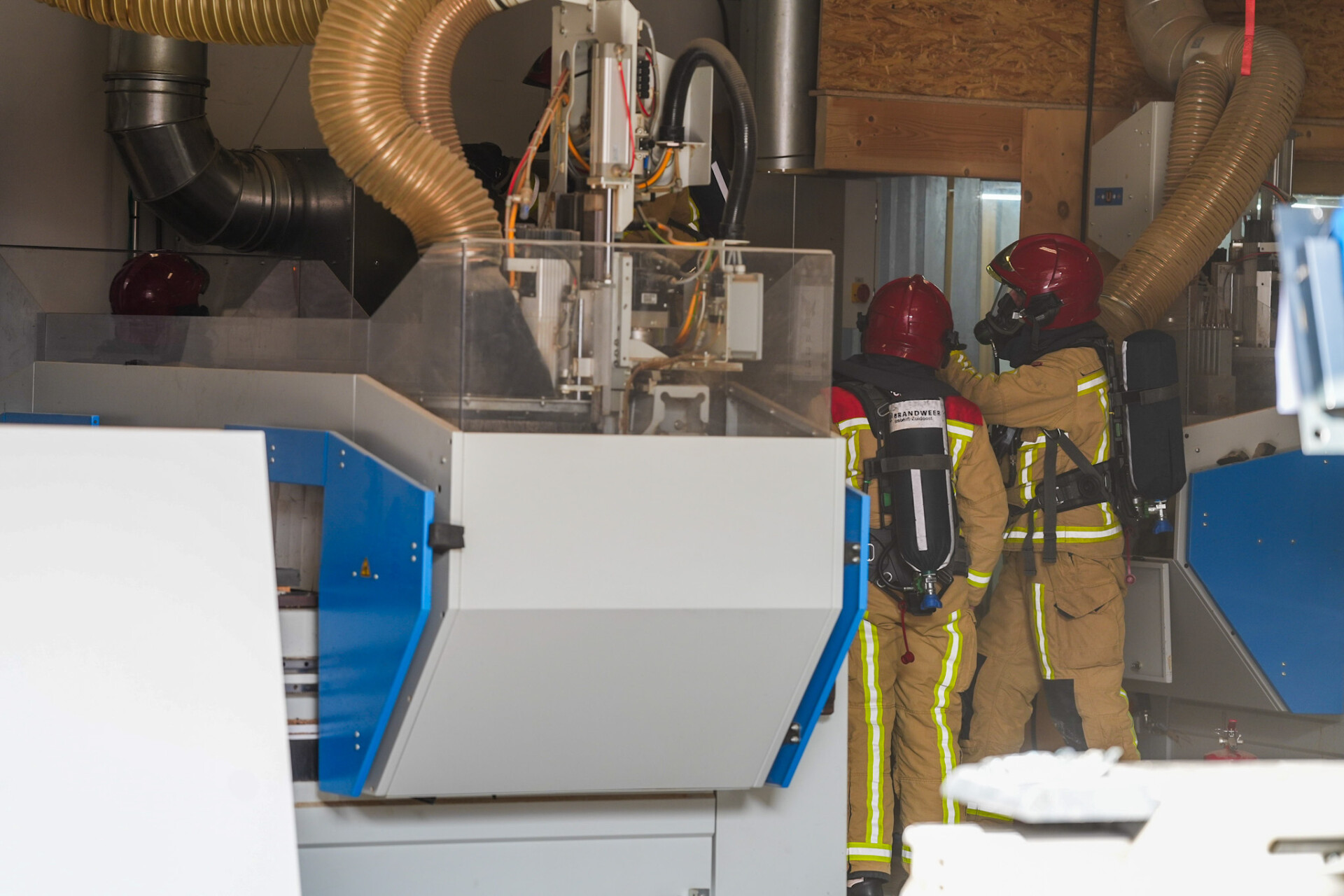Om te voorkomen dat ze rook zouden inademen, droegen de brandweerlieden ademlucht. Rond 17.00 uur moest het filter van de houtverwerker in het pand volledig worden gedemonteerd om de brand goed te kunnen blussen.
