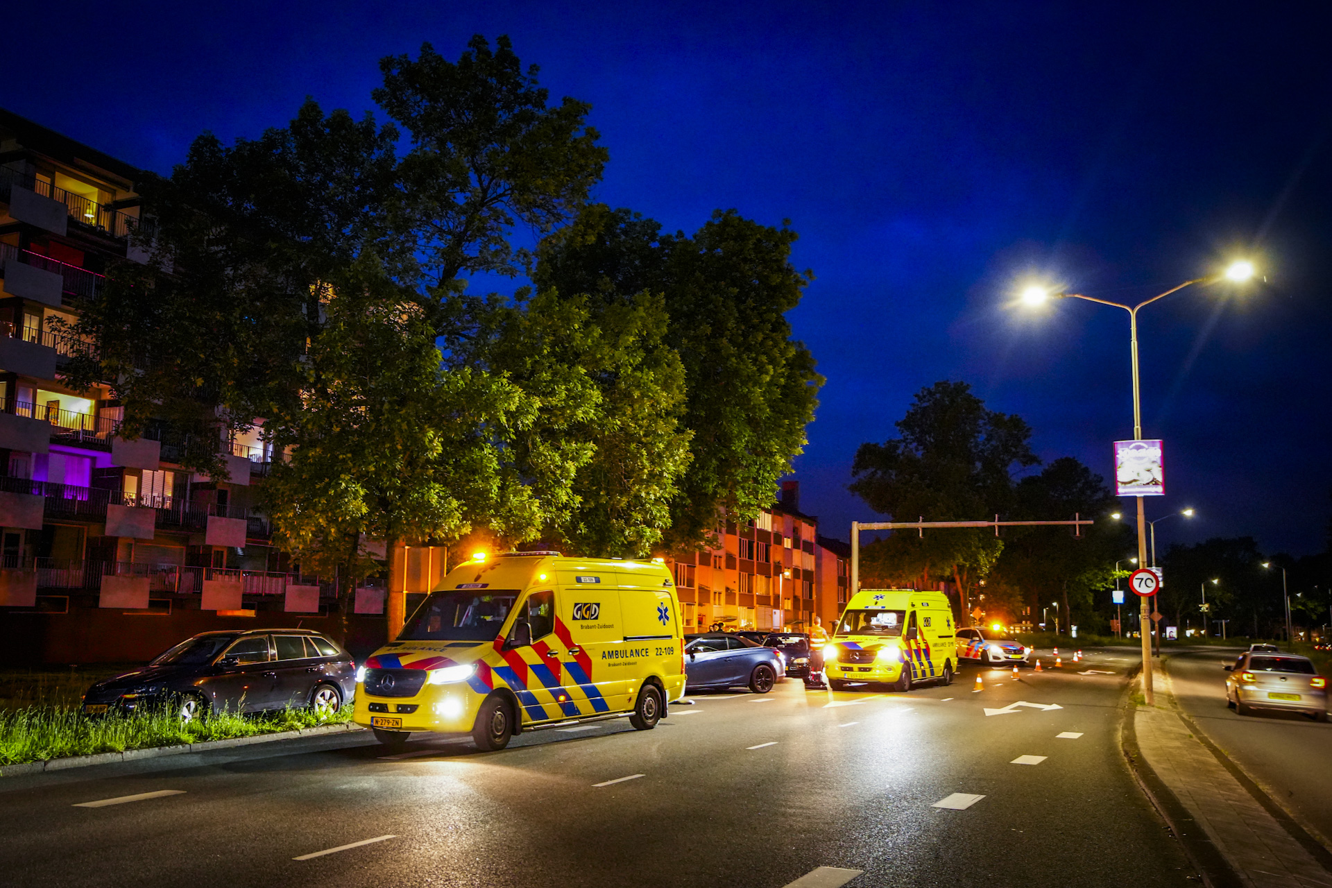 Op de Piuslaan, ter hoogte van een invoegstrook vlak voor de Geldropseweg, kwamen twee voertuigen met elkaar in botsing. Twee ambulances en meerdere politie-eenheden kwamen ter plaatse. De voertuigen liepen aanzienlijke schade op en de weg lag bezaaid met brokstukken.