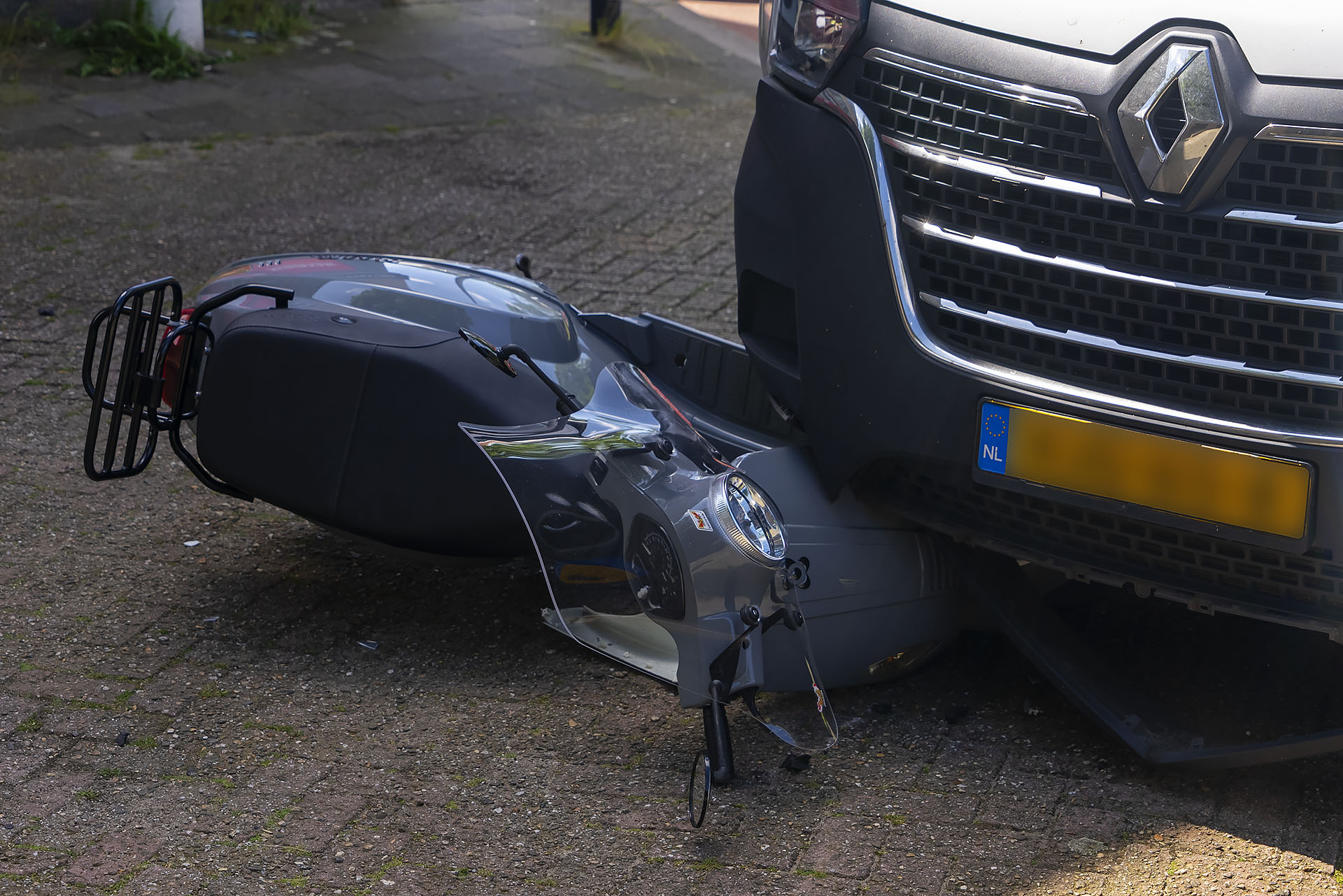 Scooter belandt onder bakwagen, bestuurder lichtgewond