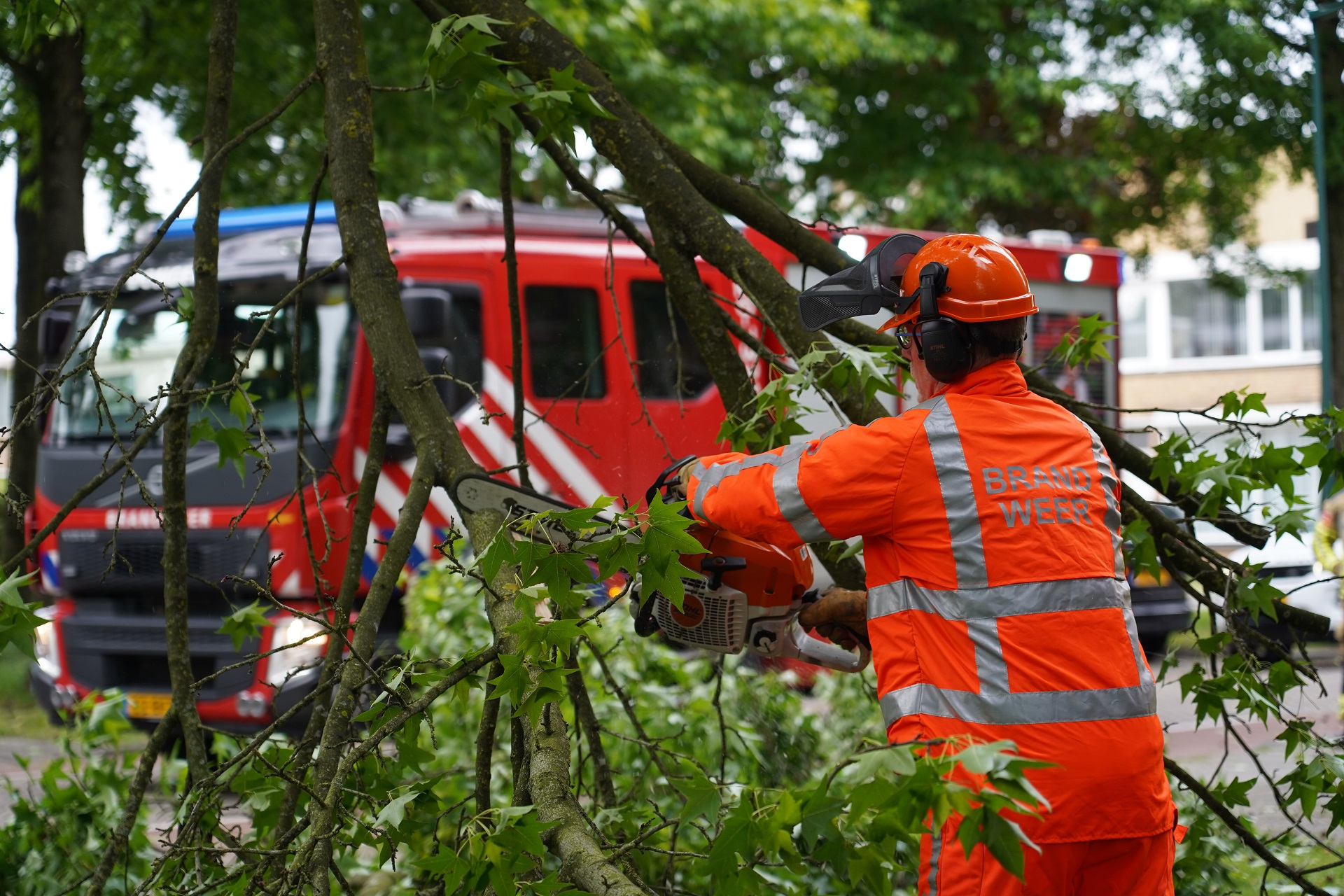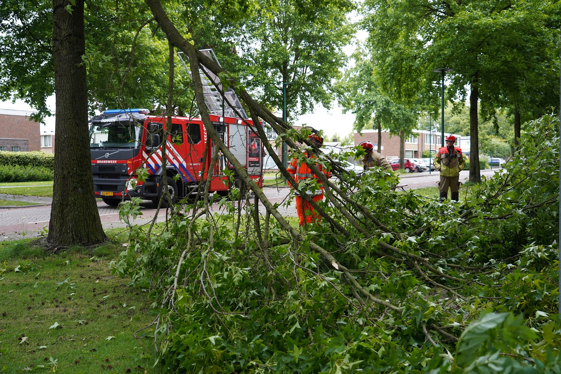 De brandweer kwam in actie om deze grote tak te verwijderen. De tak werd in stukken gezaagd en aan de kant gelegd. De gemeente zal dinsdag de resten ophalen.